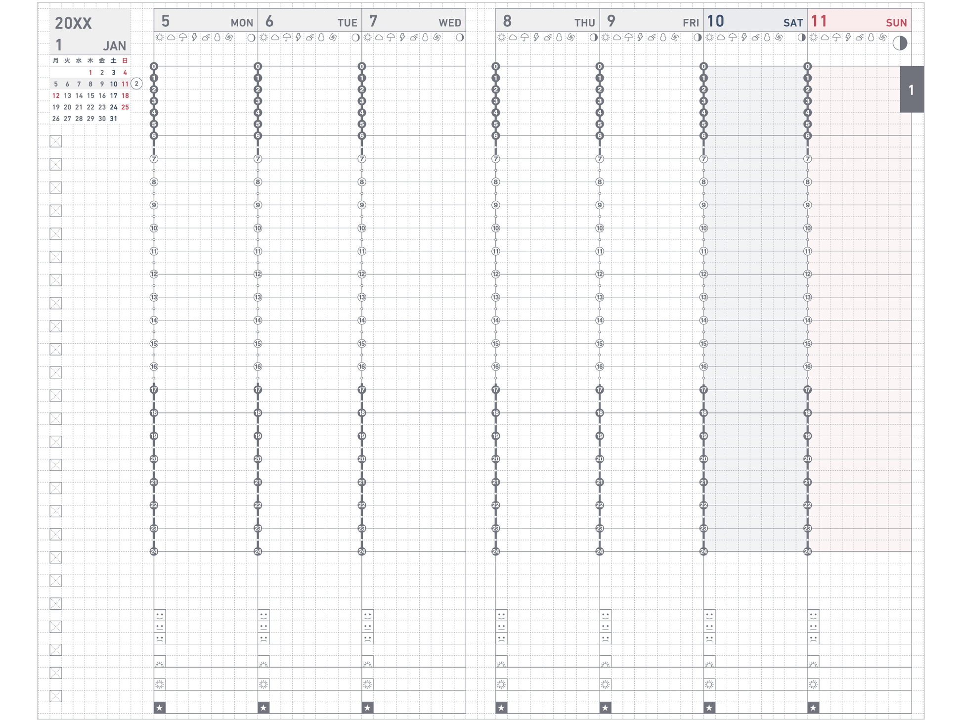 - Weekly 24-hour (on two pages) December 2026 - December 2027