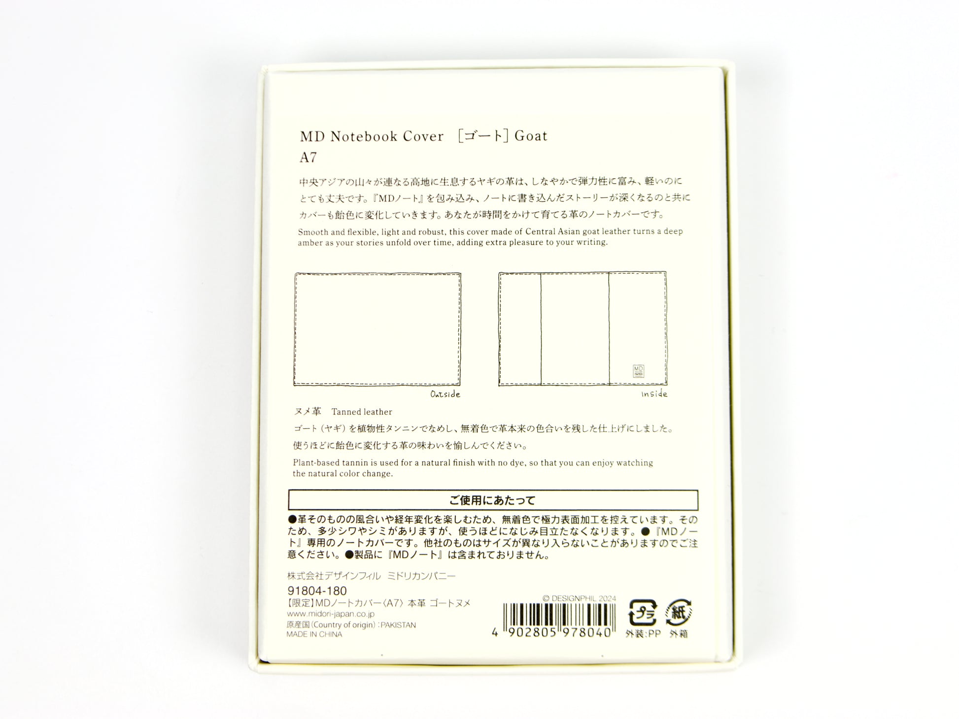 Esta funda para cuaderno proporciona un soporte sutil para el cuaderno Midori MD A6 . El cuero utilizado en la funda de piel de cabra procede de las tierras altas de Asia Central. Suave y flexible, ligero y extremadamente robusto, se utiliza una sola capa para que su cuaderno MD se ajuste perfectamente. El cuero no está teñido para lograr un aspecto sencillo y cambiará de carácter a medida que lo use. Cuanto más tiempo esté este producto al sol, más oscuro se tornará. Esta funda para cuaderno también cuenta con 2 ranuras para tarjetas y un lazo para bolígrafo que va al ras del producto cuando no se utiliza. Sin bultos ni protuberancias, por lo que el cuaderno MD sigue siendo tan cómodo como se sabe.