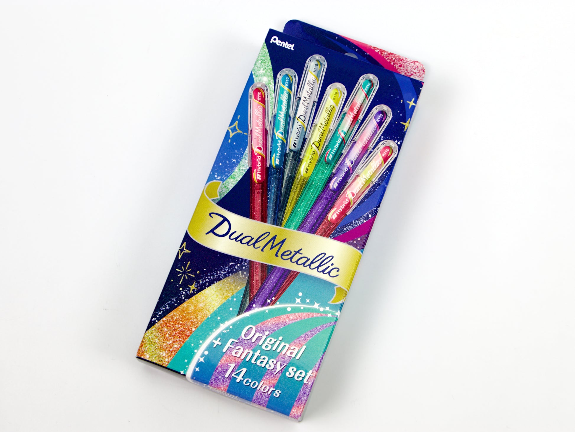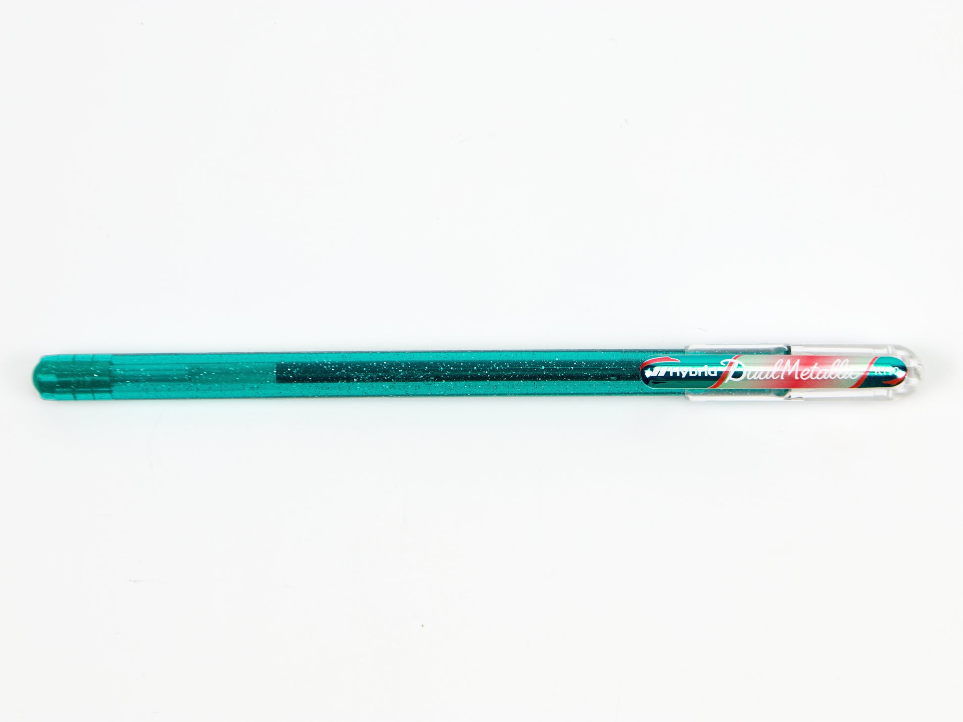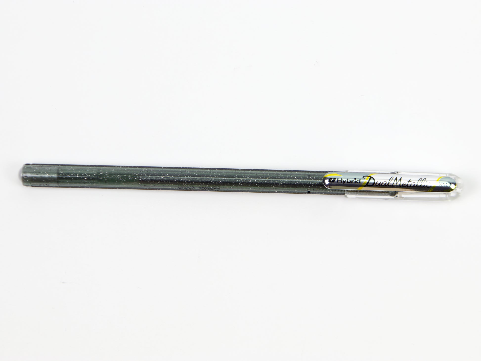 El Pentel Hybrid Dual Metallic es un bolígrafo de tinta pigmentada lamé de dos colores metálicos brillantes con una punta de bola de 1,0 mm. Para el lanzamiento limitado de otoño de 2020, ¡han agregado 7 nuevos colores metálicos duales! Las combinaciones de colores de esta línea son impresionantes y lucen geniales tanto en papel blanco como negro. El juego de 7 colores incluye: verde océano, verde aurora, gris hielo, rosa flor, violeta crepúsculo, dorado atardecer y plateado luna. ¡Este producto solo está disponible por tiempo limitado!