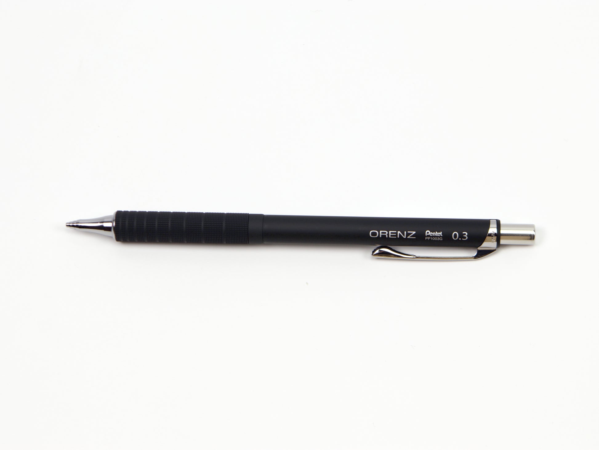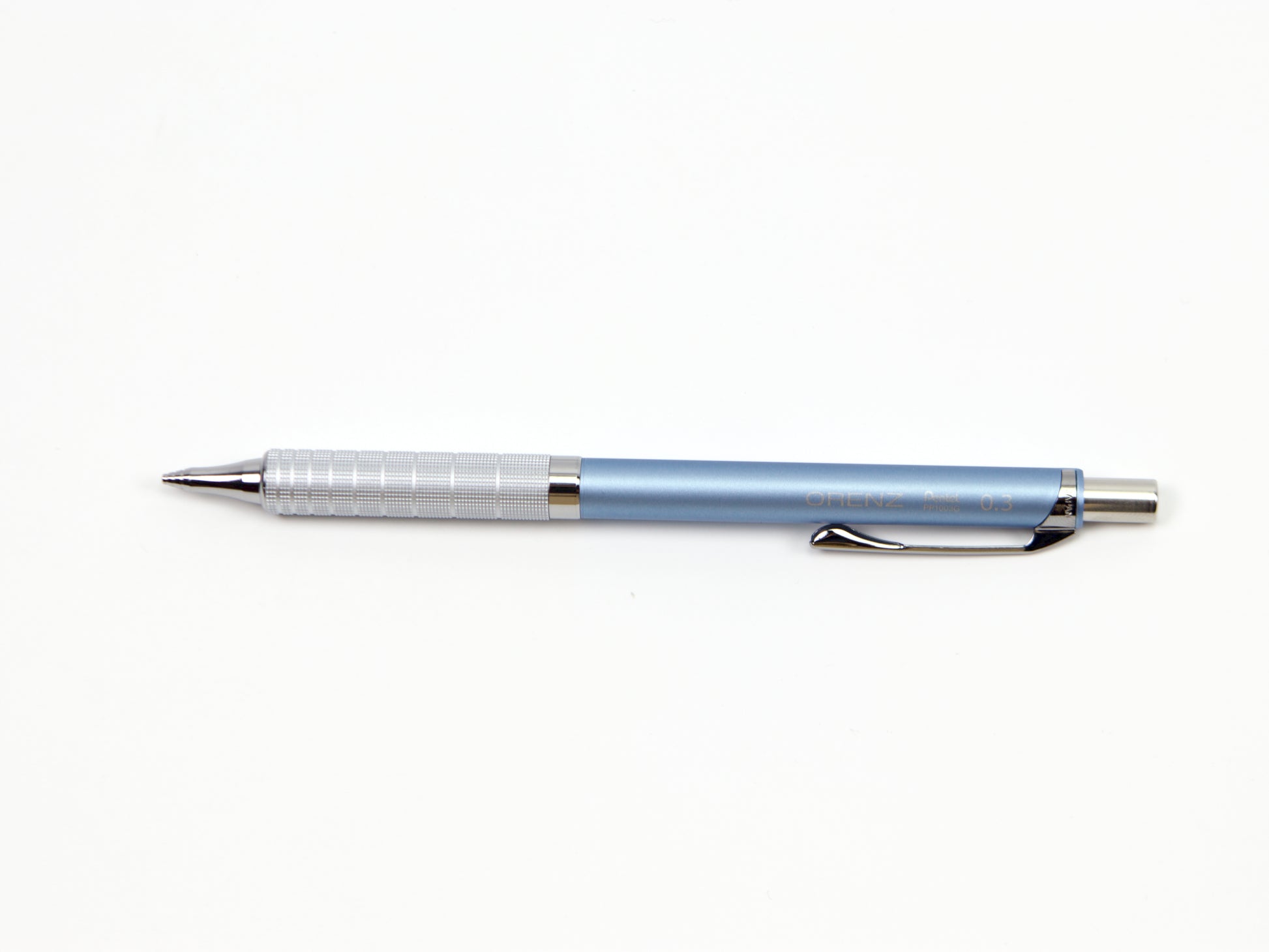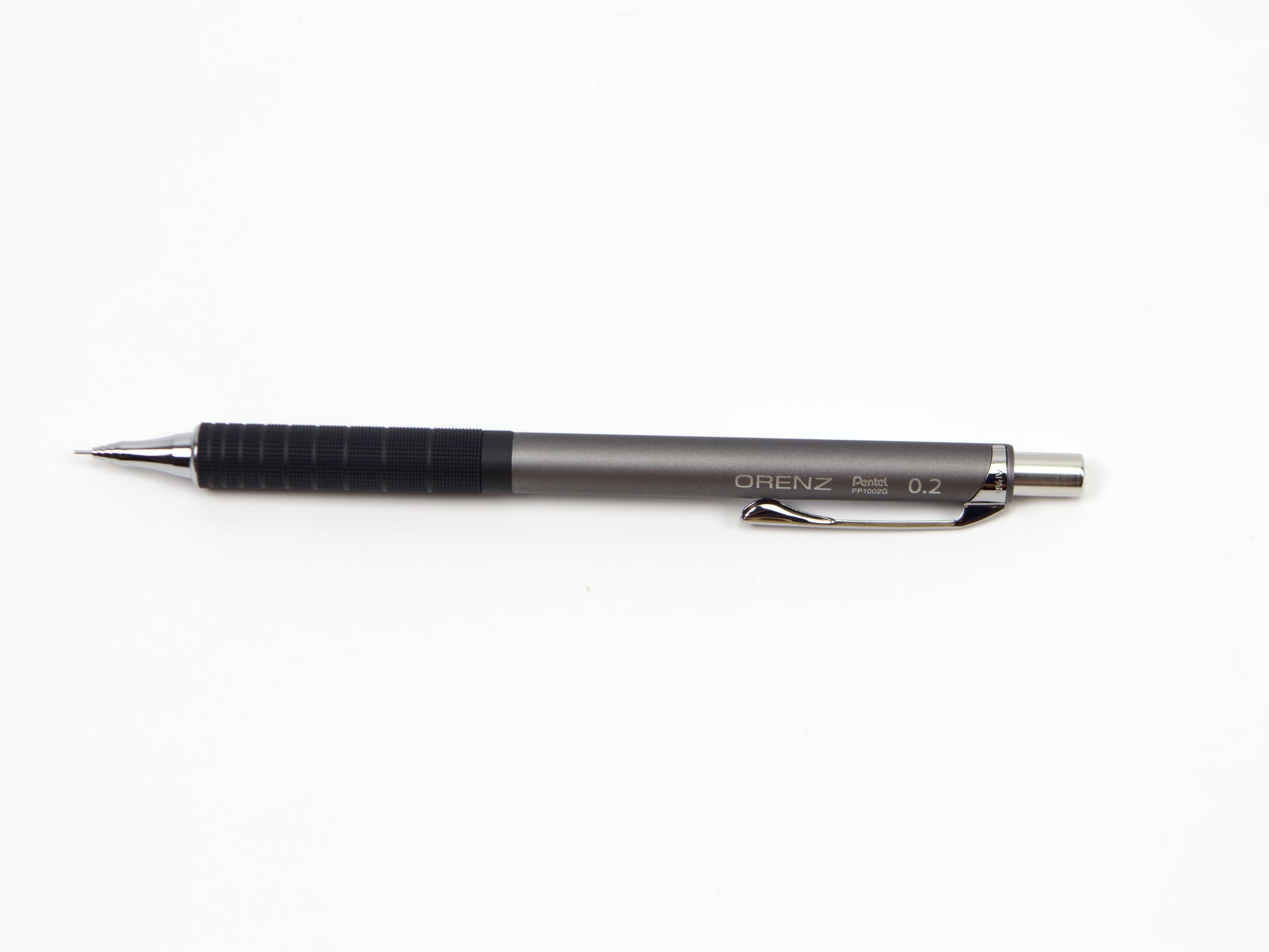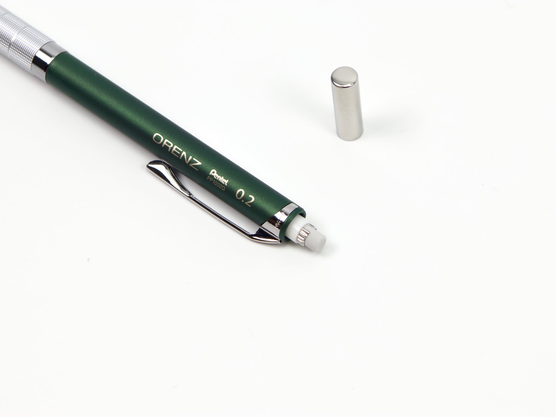 El Pentel Orenz cuenta con una innovadora punta en forma de tubo que protege la mina mientras escribes. Comienzas a escribir sin que la mina sobresalga y el lápiz la introduce según sea necesario. Esto protege la mina superfina de roturas y te permite escribir con una mina más fina de lo que normalmente podrías. El Pentel Orenz Metal Grip está disponible en tamaños de punta de 0,2 mm y 0,3 mm. Recambios de borrador disponibles. Este lápiz también está disponible en 0,5 mm .