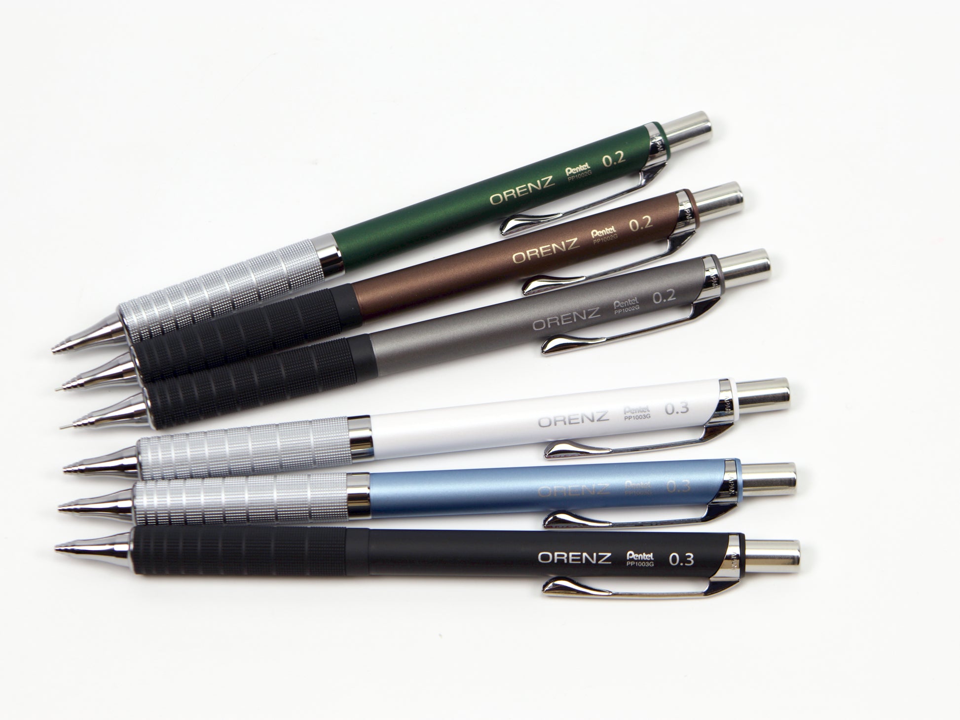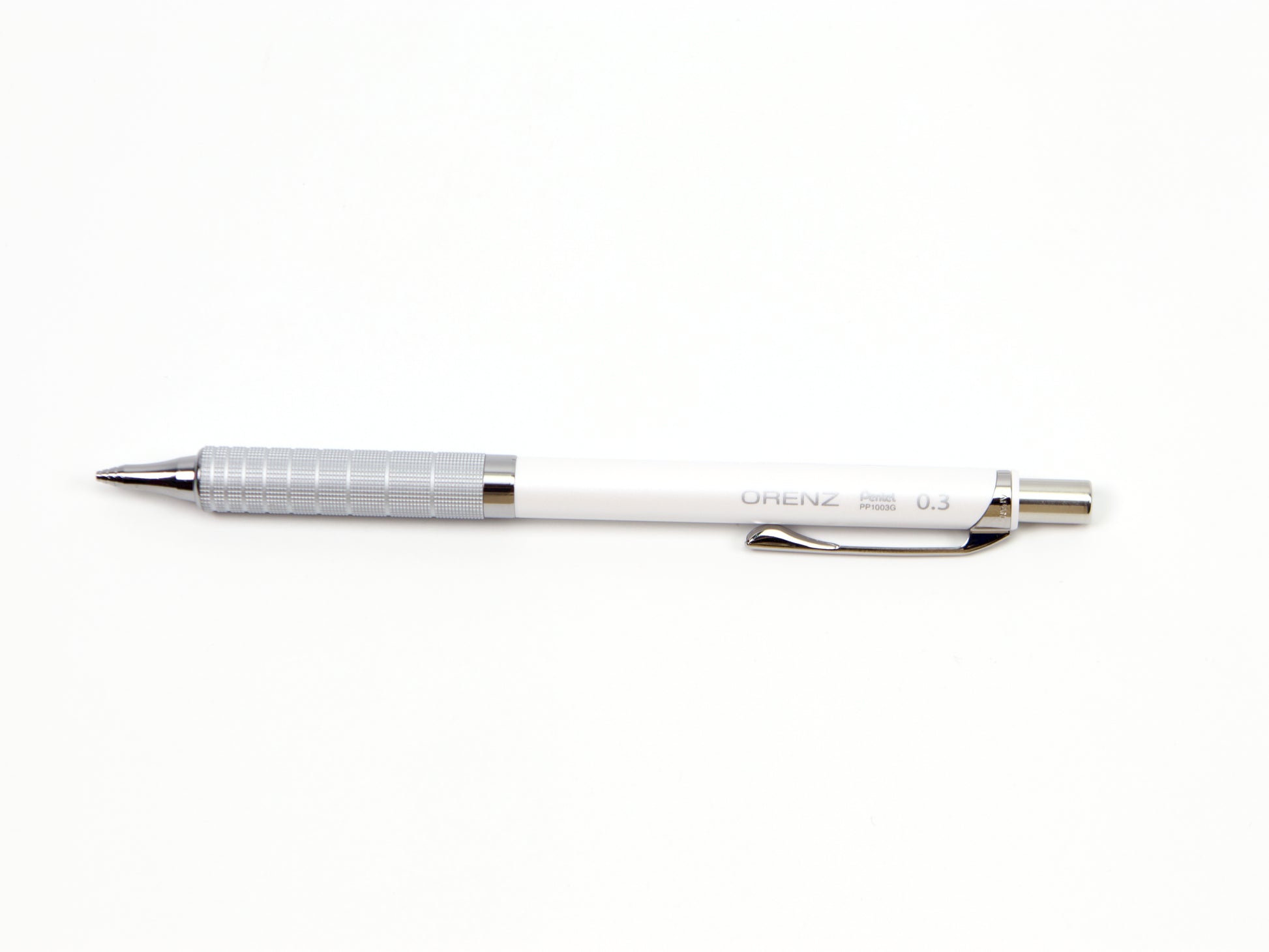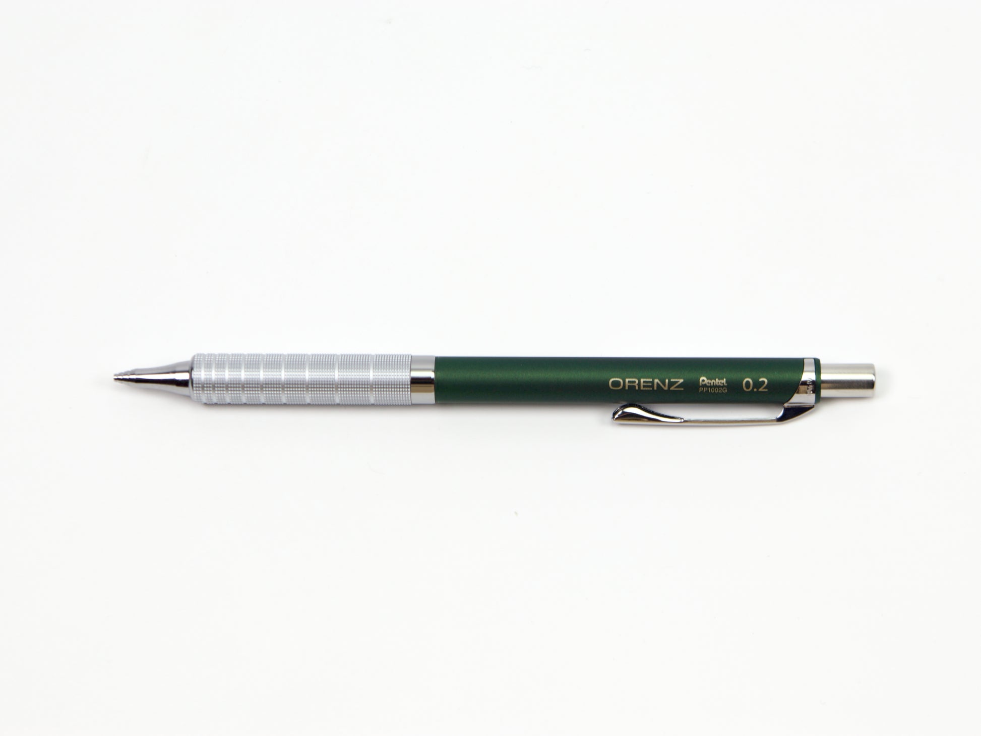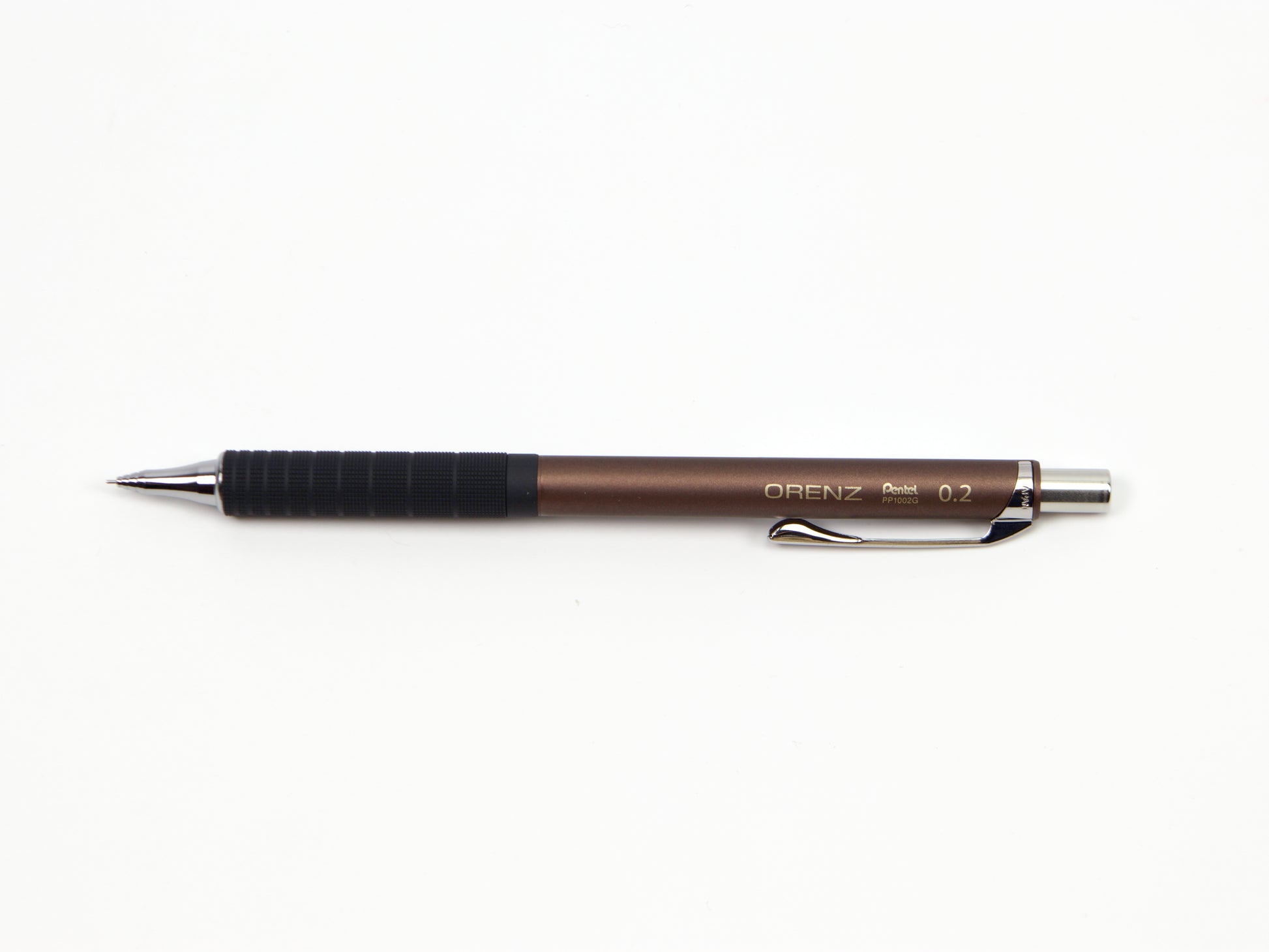 El Pentel Orenz cuenta con una innovadora punta en forma de tubo que protege la mina mientras escribes. Comienzas a escribir sin que la mina sobresalga y el lápiz la introduce según sea necesario. Esto protege la mina superfina de roturas y te permite escribir con una mina más fina de lo que normalmente podrías. El Pentel Orenz Metal Grip está disponible en tamaños de punta de 0,2 mm y 0,3 mm. Recambios de borrador disponibles. Este lápiz también está disponible en 0,5 mm .