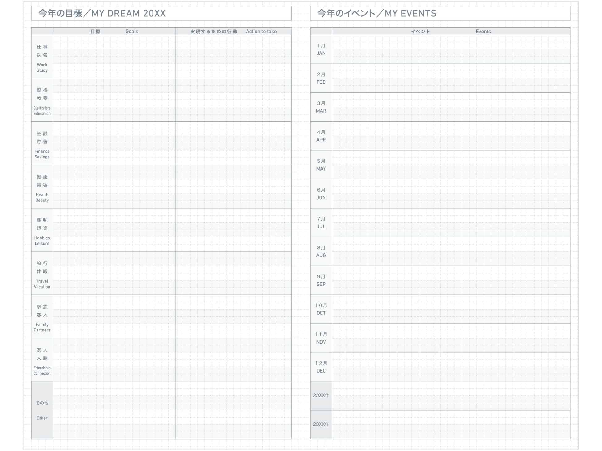 - Monthly Gantt Chart is included at the bottom of each monthly spread