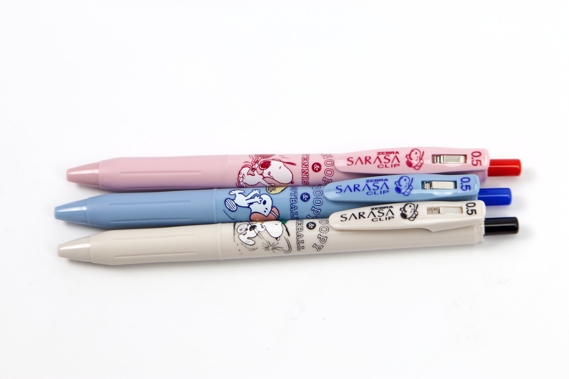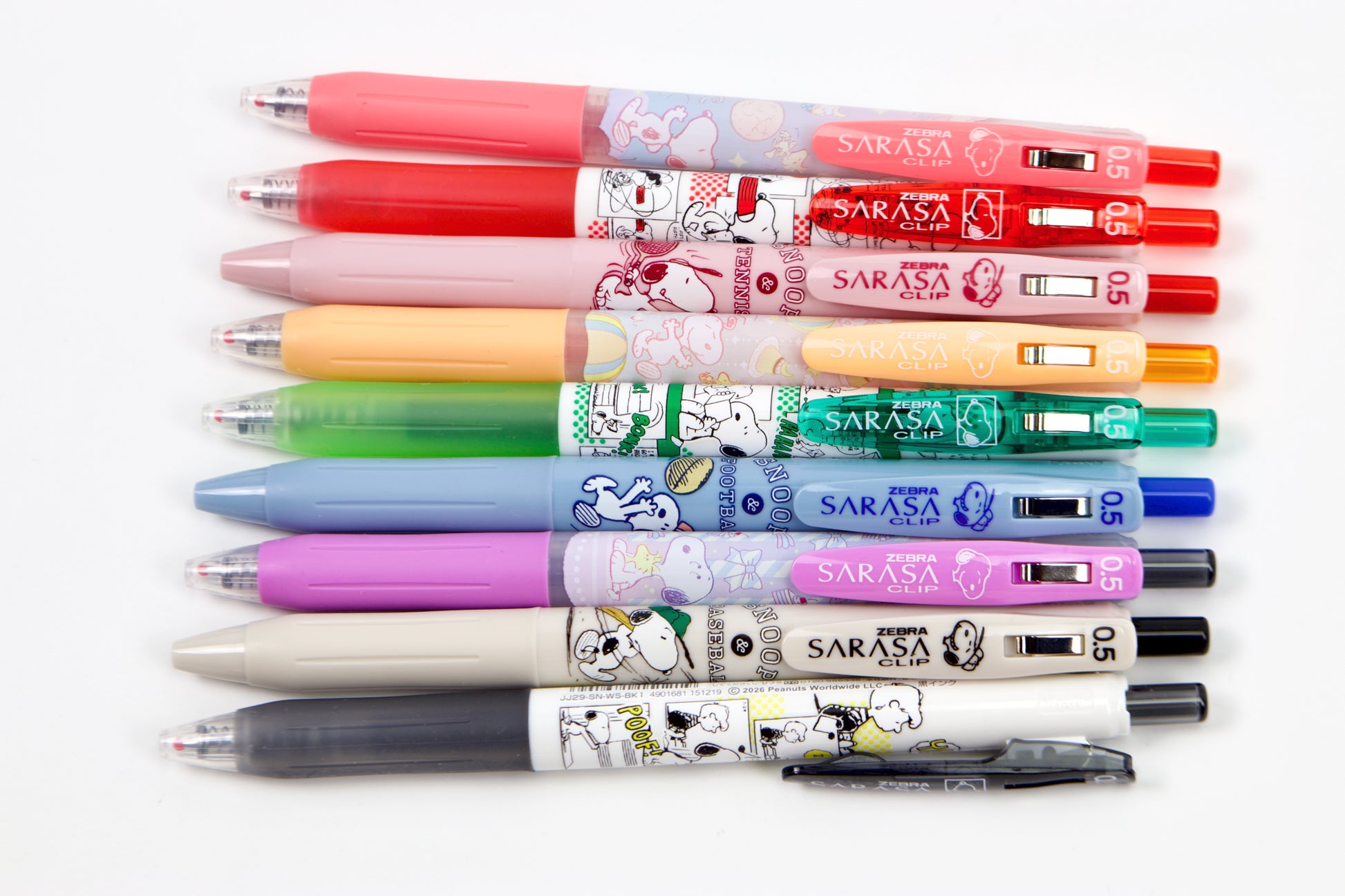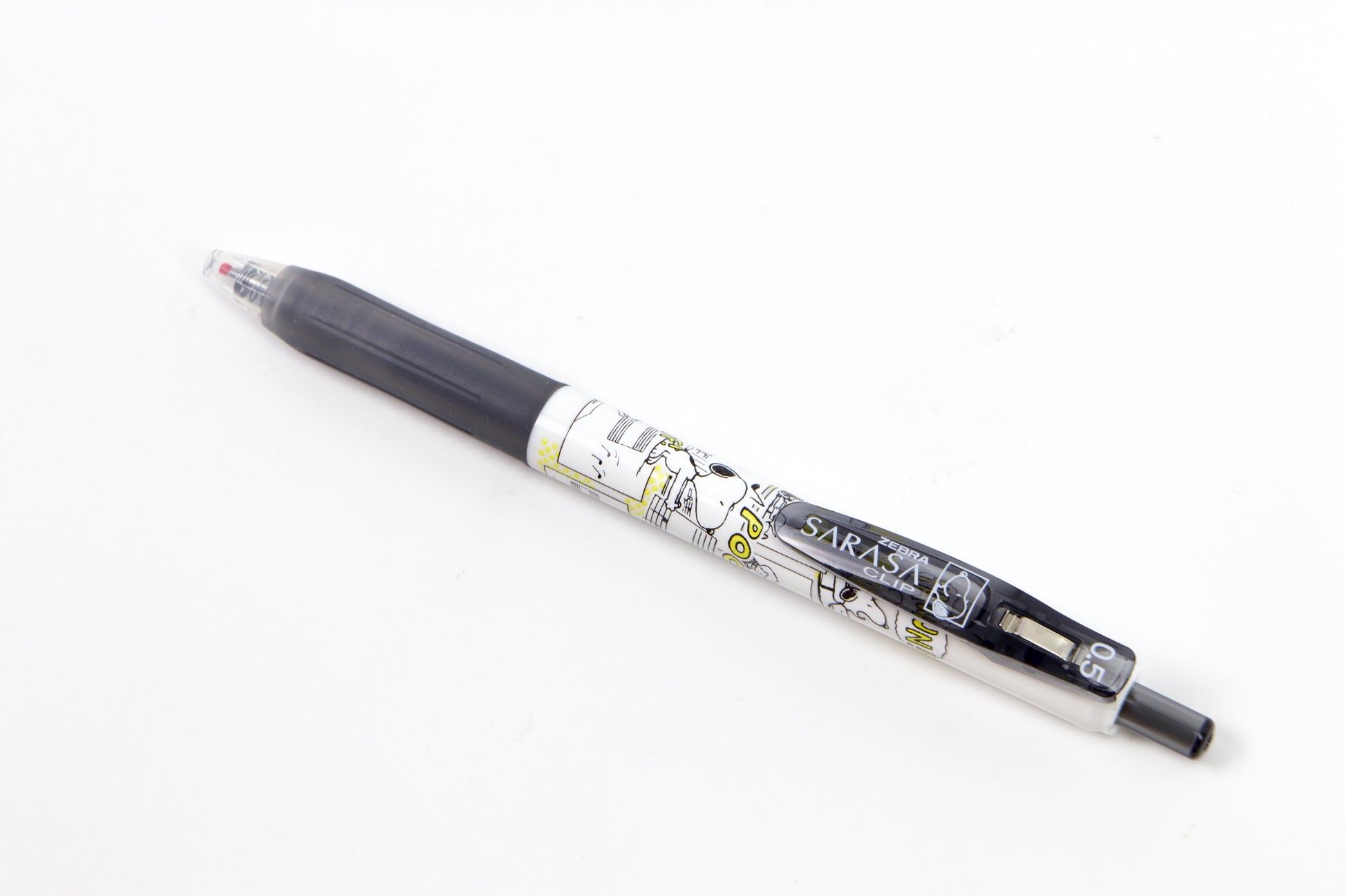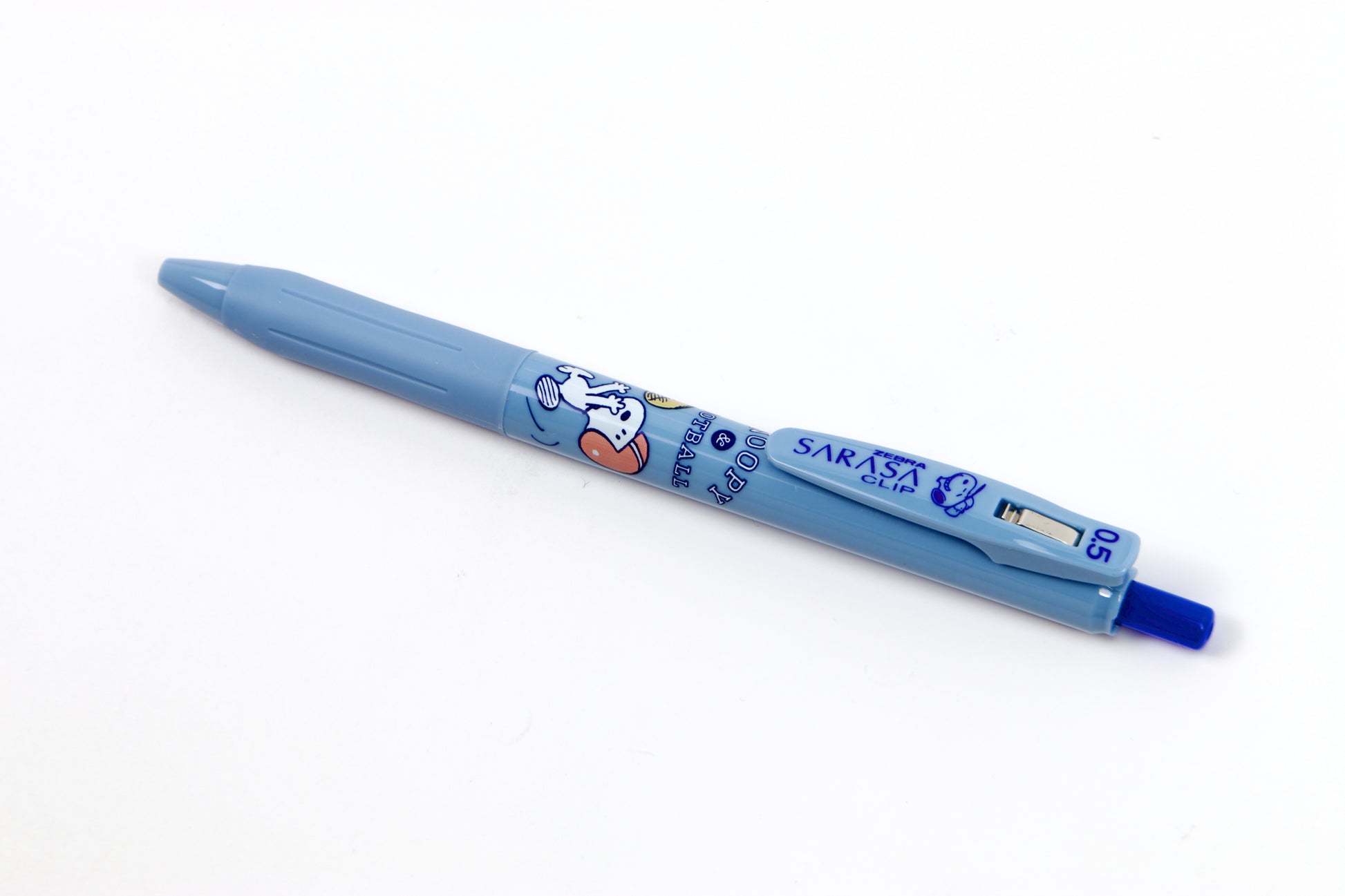 Chaque Sarasa Clip Snoopy Single présente Snoopy non seulement sur le corps du stylo, mais également un design original sur le corps de la recharge ! Choisissez entre le rouge, l'orange, le bleu cobalt, le bleu noir et 3 motifs différents en noir. Les motifs sont décrits plus en détail ci-dessous. Chaque stylo contient l'encre gel Sarasa très populaire avec une pointe de 0,5 mm.