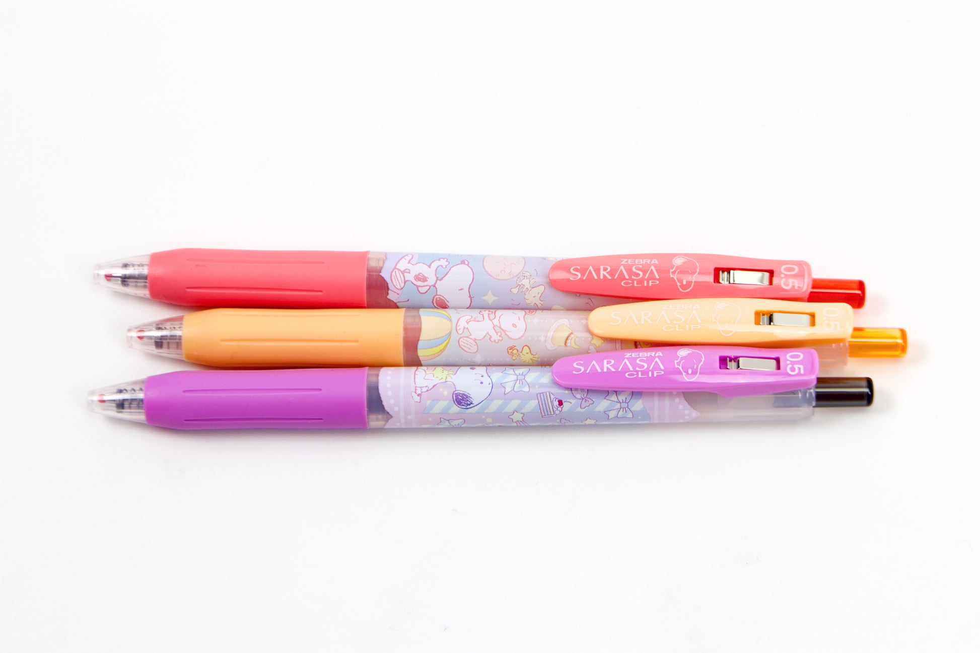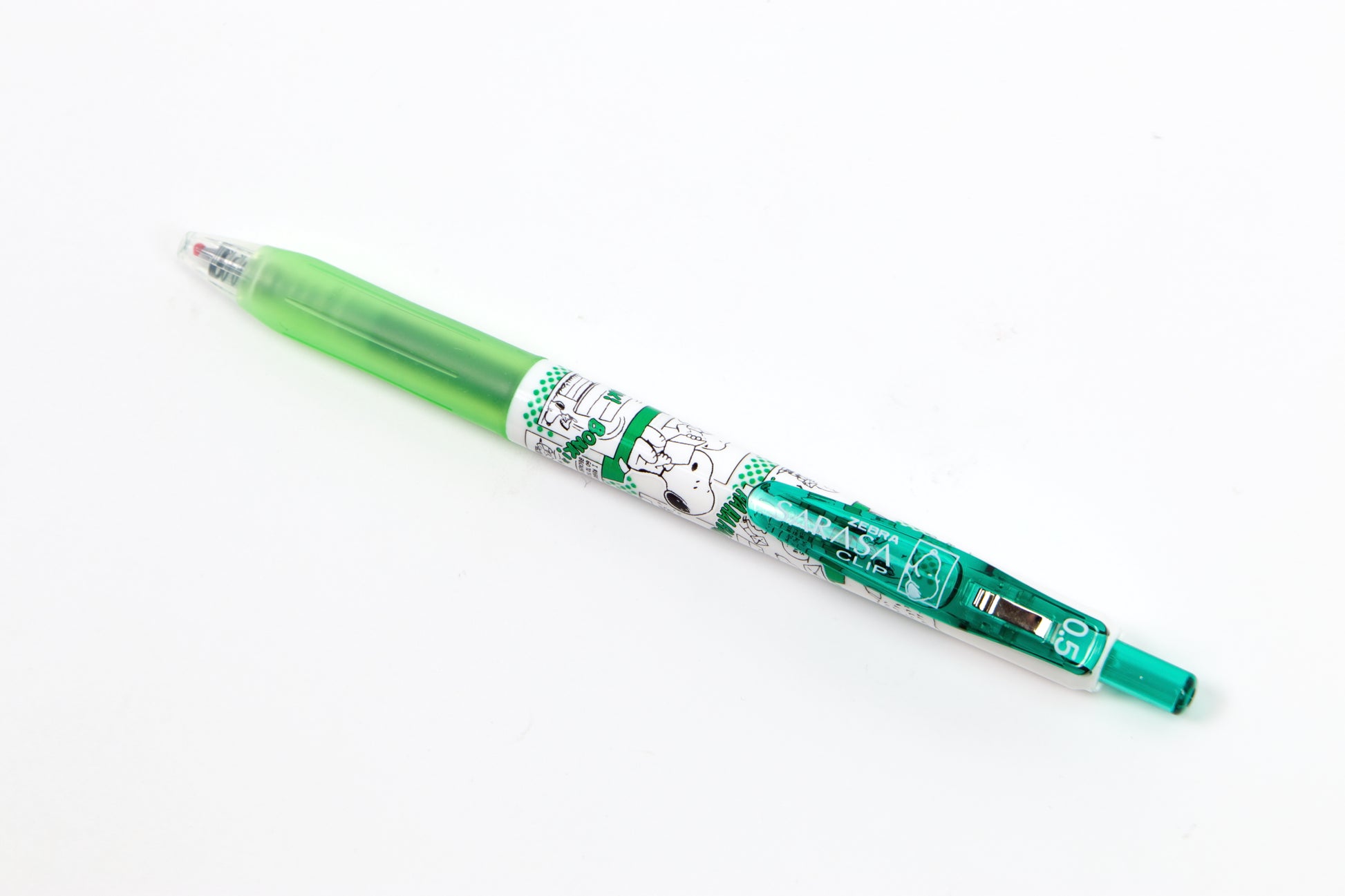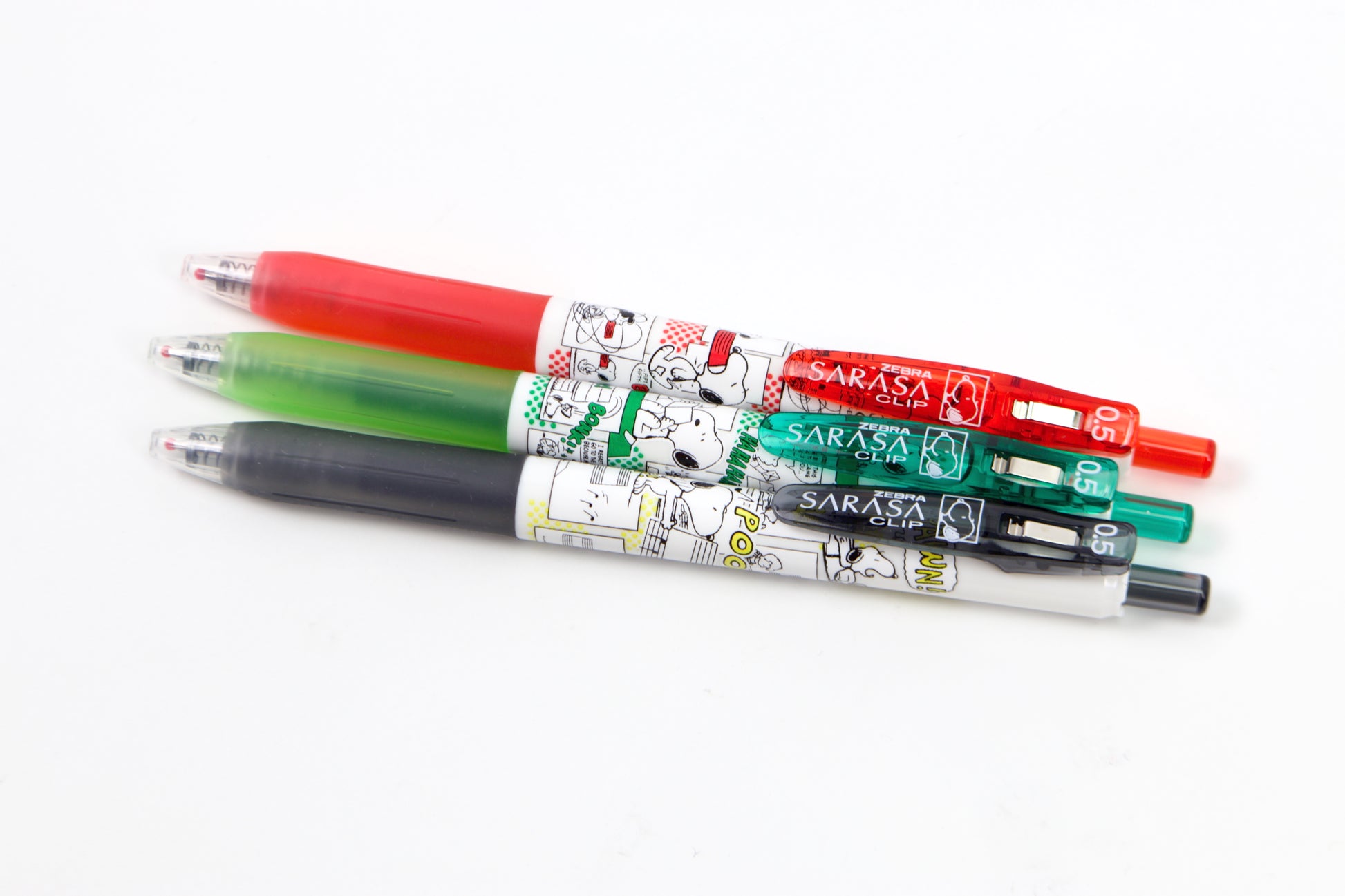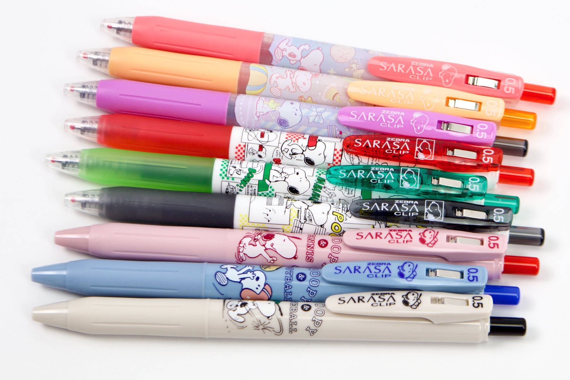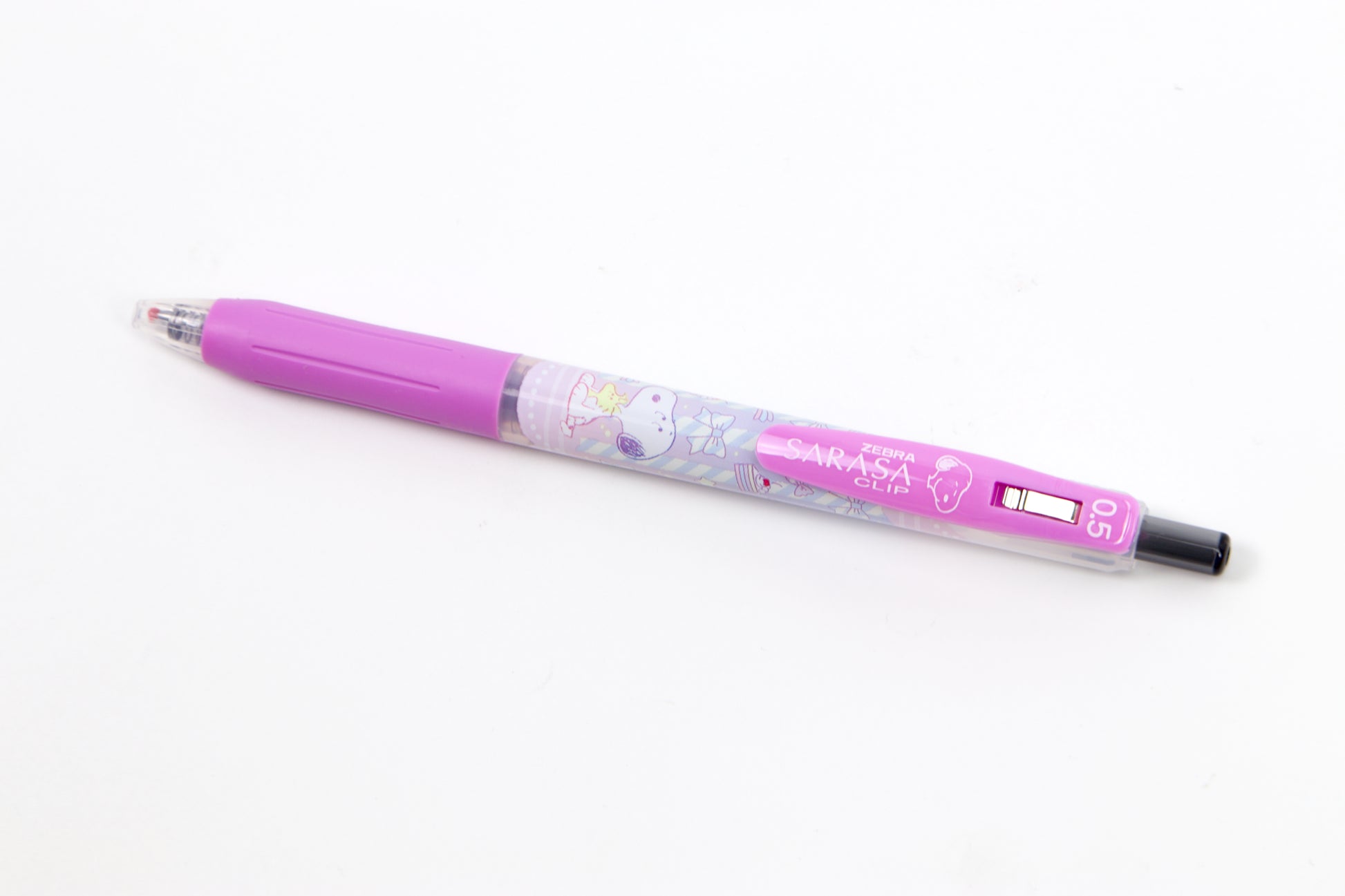 Chaque Sarasa Clip Snoopy Single présente Snoopy non seulement sur le corps du stylo, mais également un design original sur le corps de la recharge ! Choisissez entre le rouge, l'orange, le bleu cobalt, le bleu noir et 3 motifs différents en noir. Les motifs sont décrits plus en détail ci-dessous. Chaque stylo contient l'encre gel Sarasa très populaire avec une pointe de 0,5 mm.