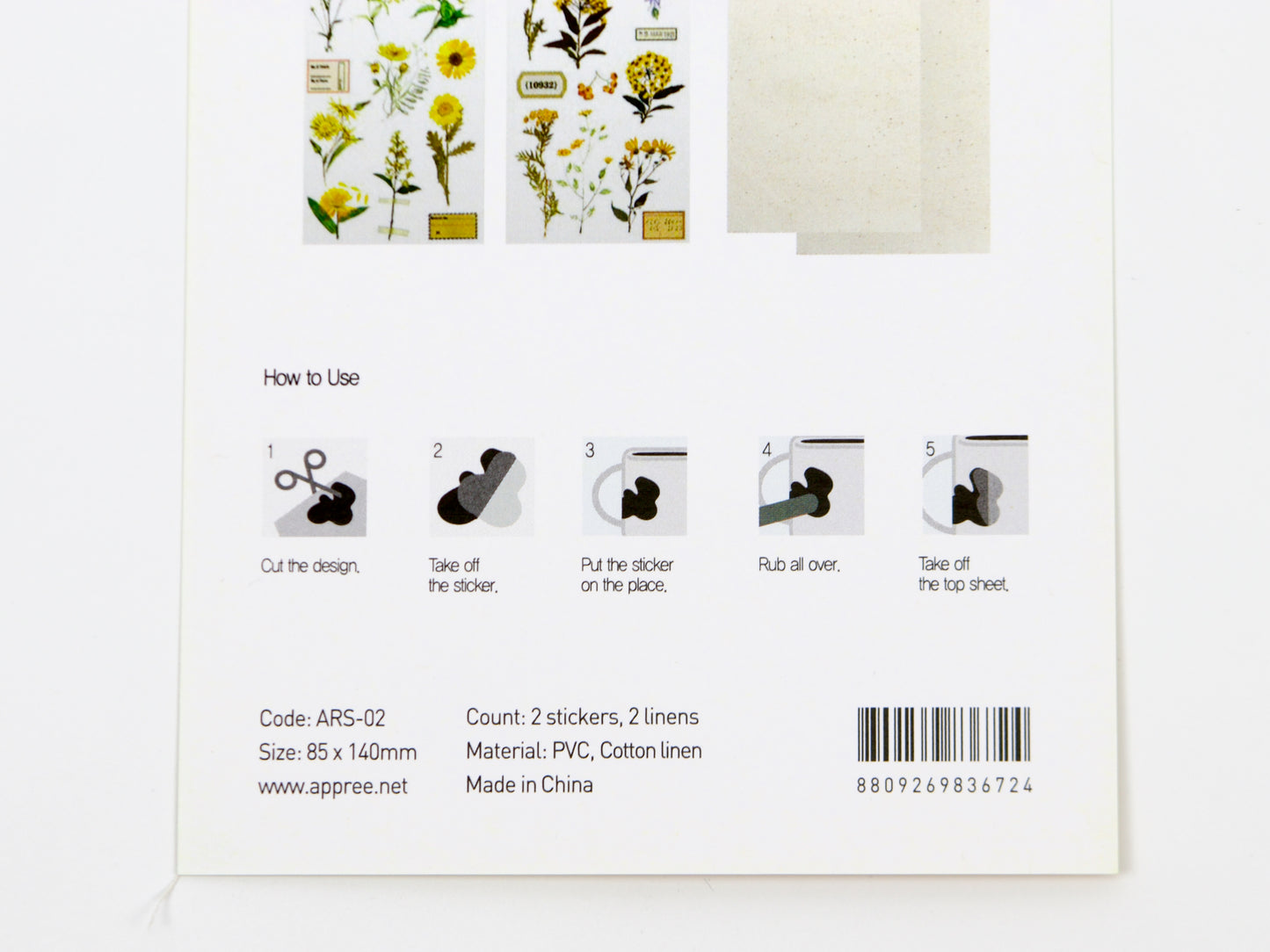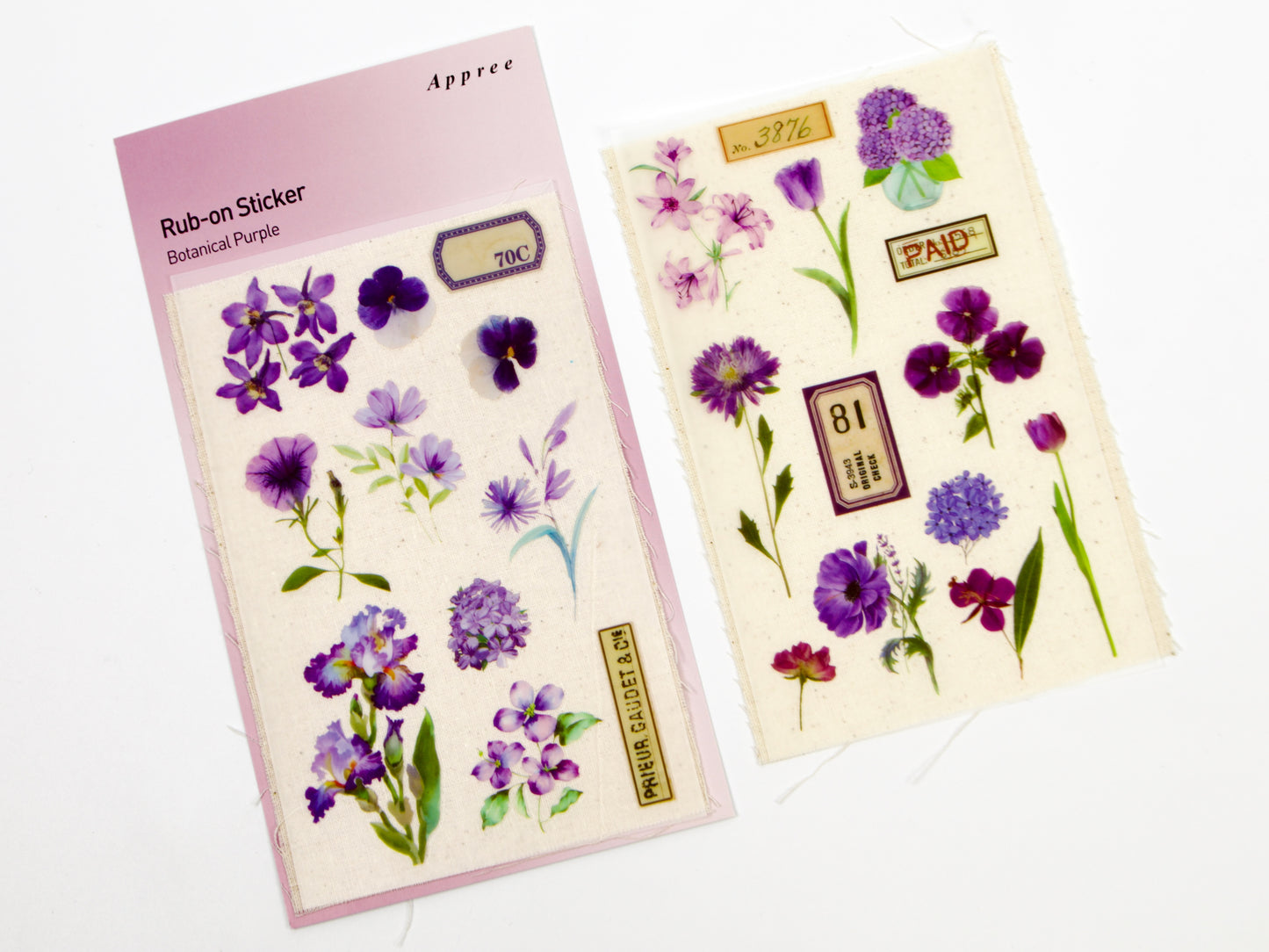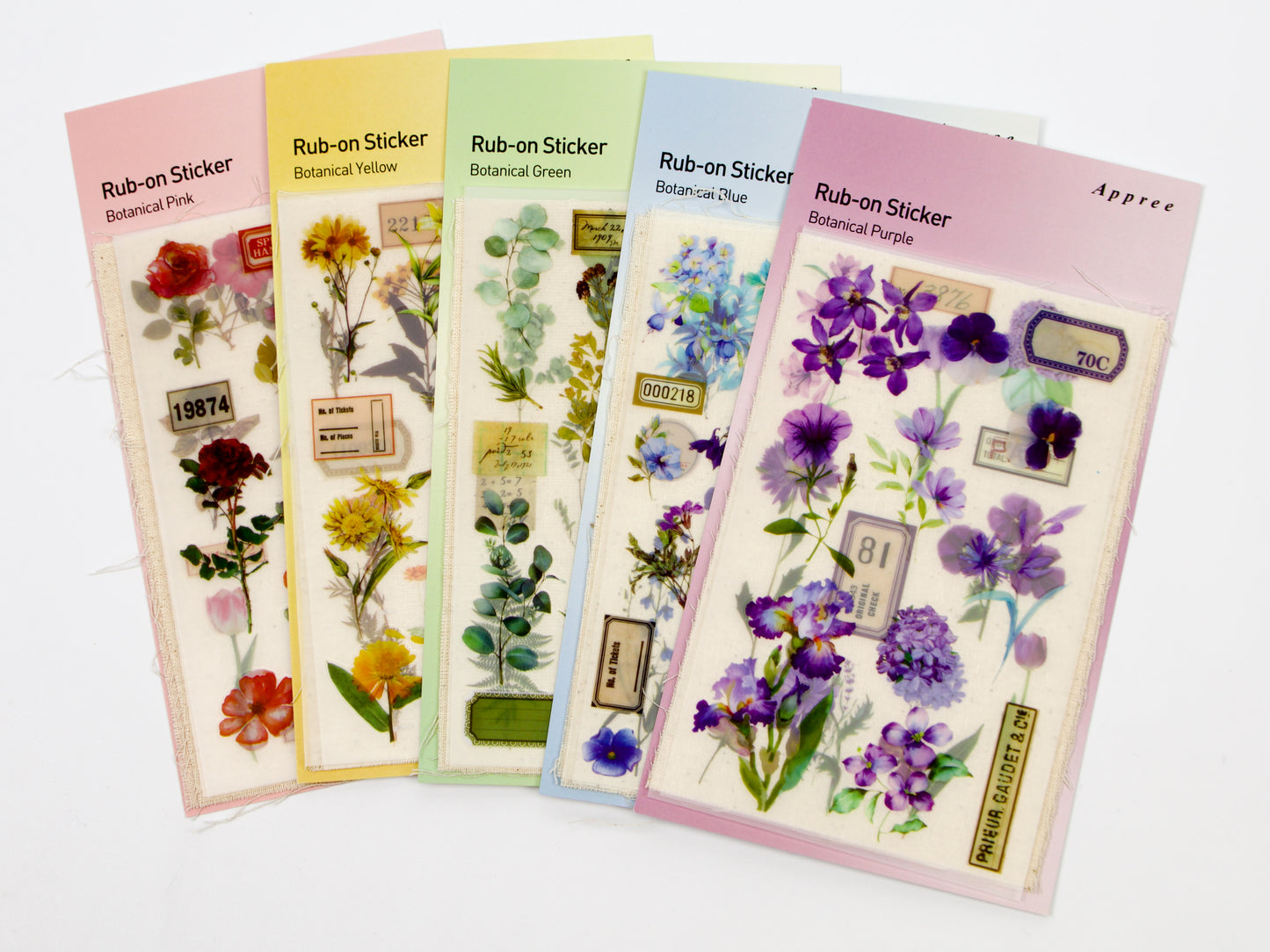 Appree is an innovative stationery company from South Korea. These delightful rub-on stickers look just like pressed flowers and will allow you to add some beautiful natural looking embellishments to your journal pages, letters, jars, cell phone, etc. These pressed flower rub-on stickers are not actually pressed flowers, but created from images of actual pressed flowers, and they look like the real thing!