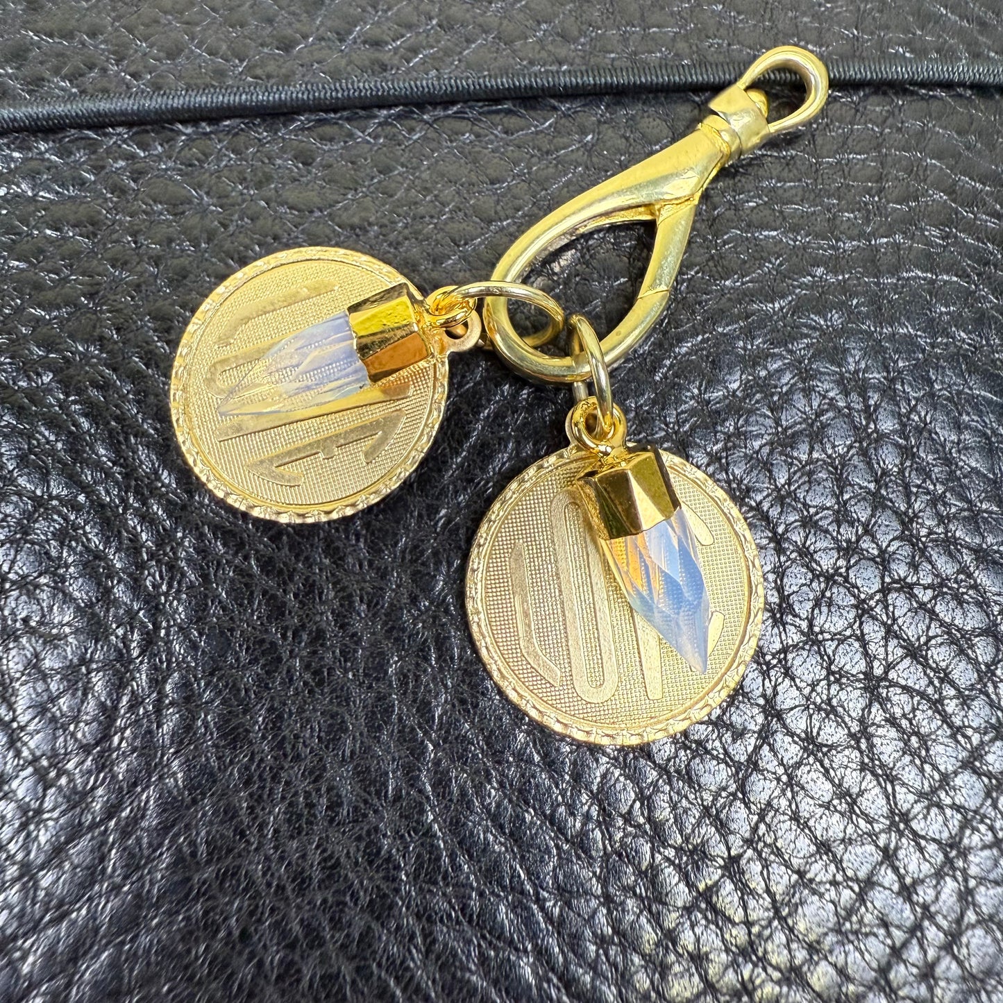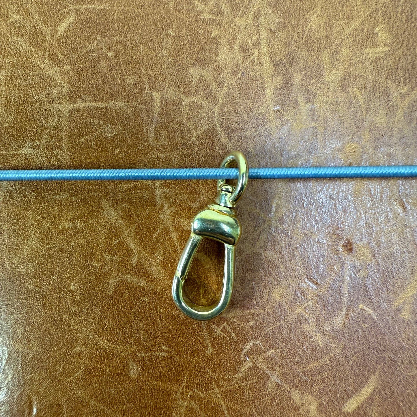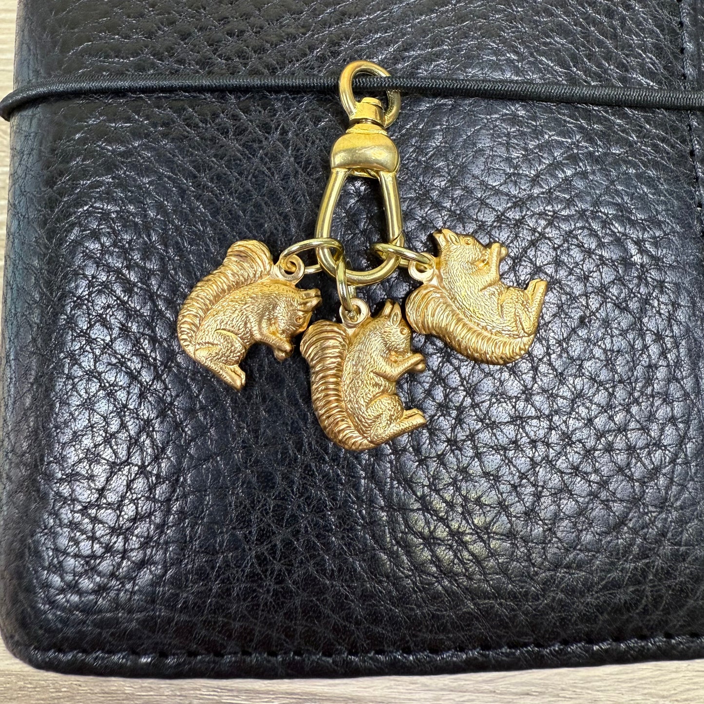 This swivel brass charm holder is perfect for collecting charms to accessorize your traveler's notebook! The regular 25mm holder is perfect for attaching to both the passport and regular size TN elastic strap. The longer 32mm is best suited to the regular size TN due to its longer length, but works with both. Charms are sold separately and are shown for example purposes.