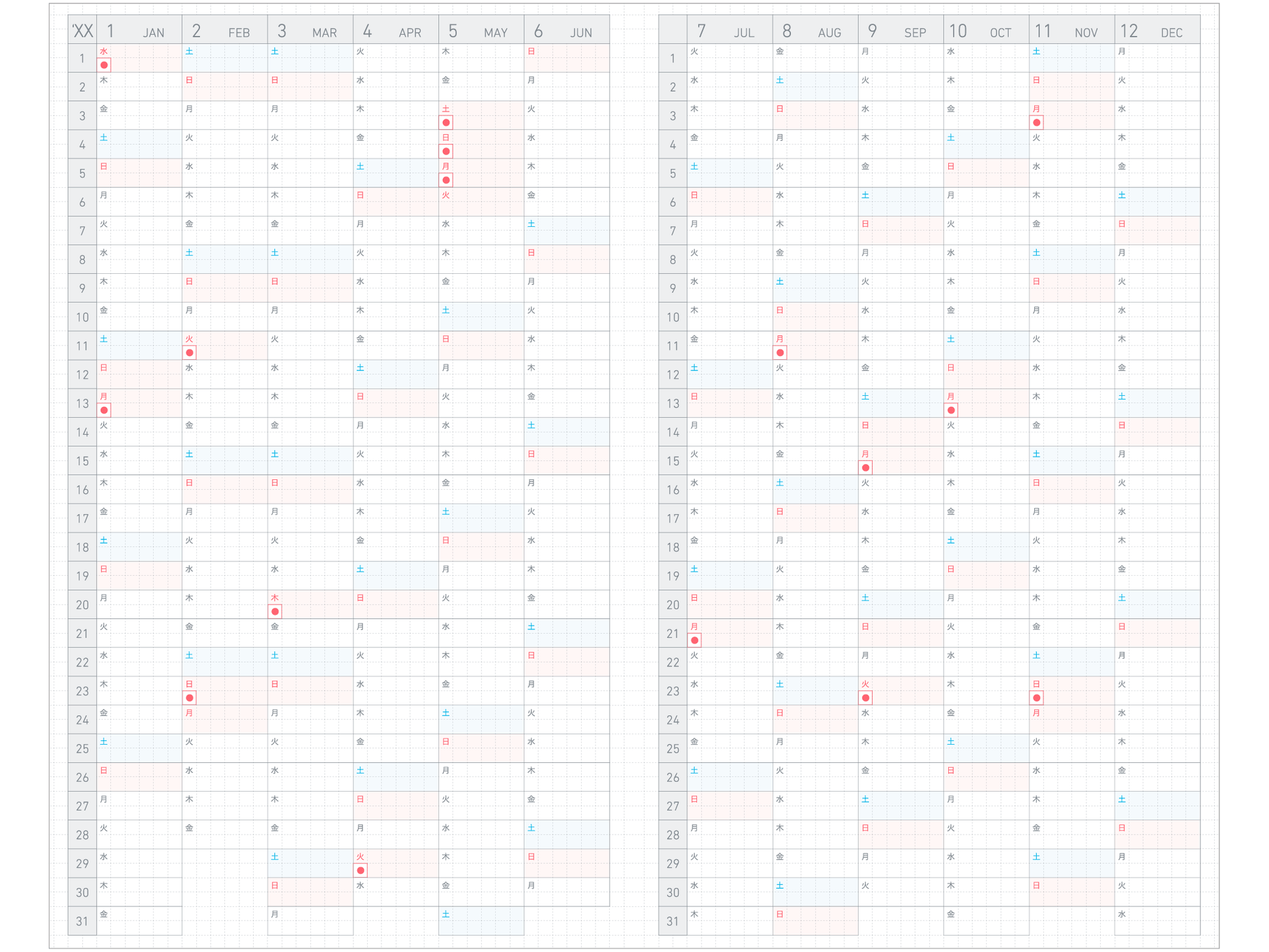 - Weekly 24-hour (on two pages) December 2025 - December 2026