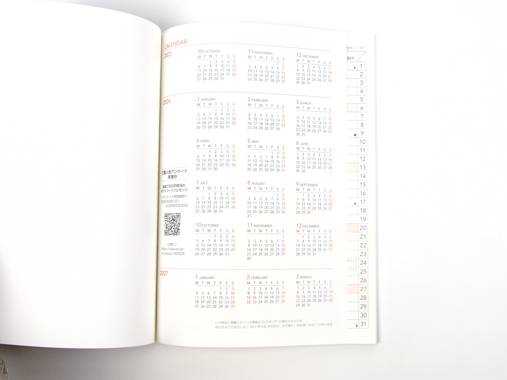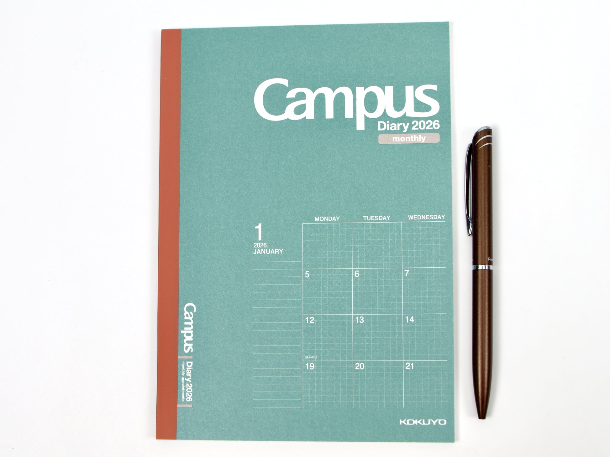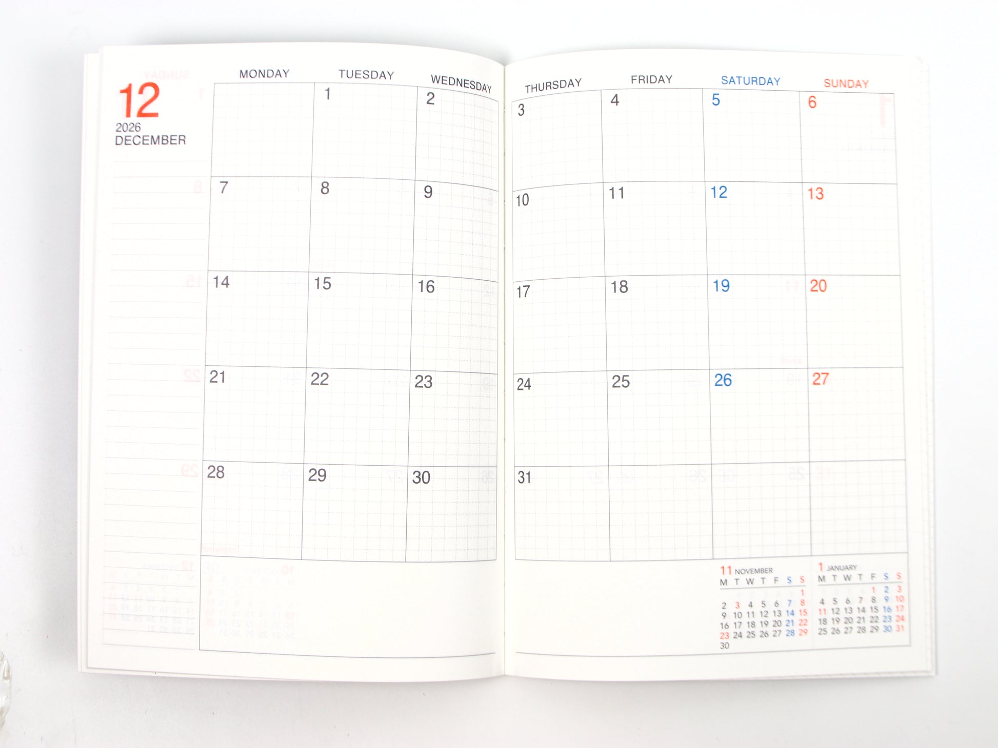 Introducing the Kokuyo Campus Monthly A5 Calendar for 2026! Includes monthly spreads for December 2025 through January 2027 (14 months), and 33 pages of grid memo pages. This is a simple, minimal planner using high quality Kokuyo Campus paper.