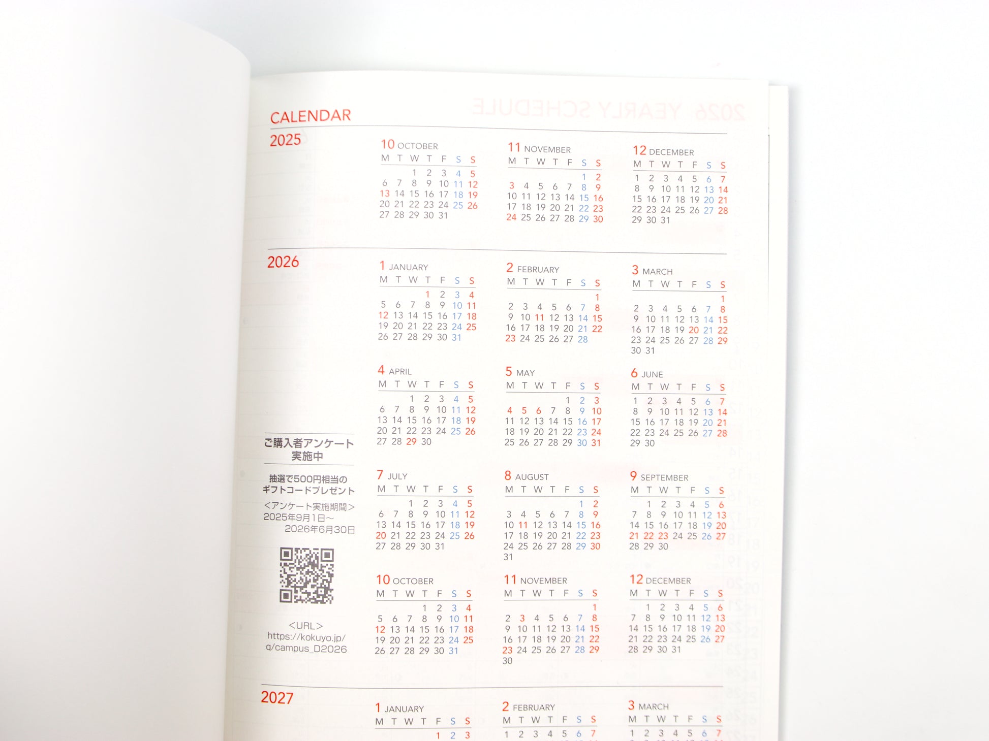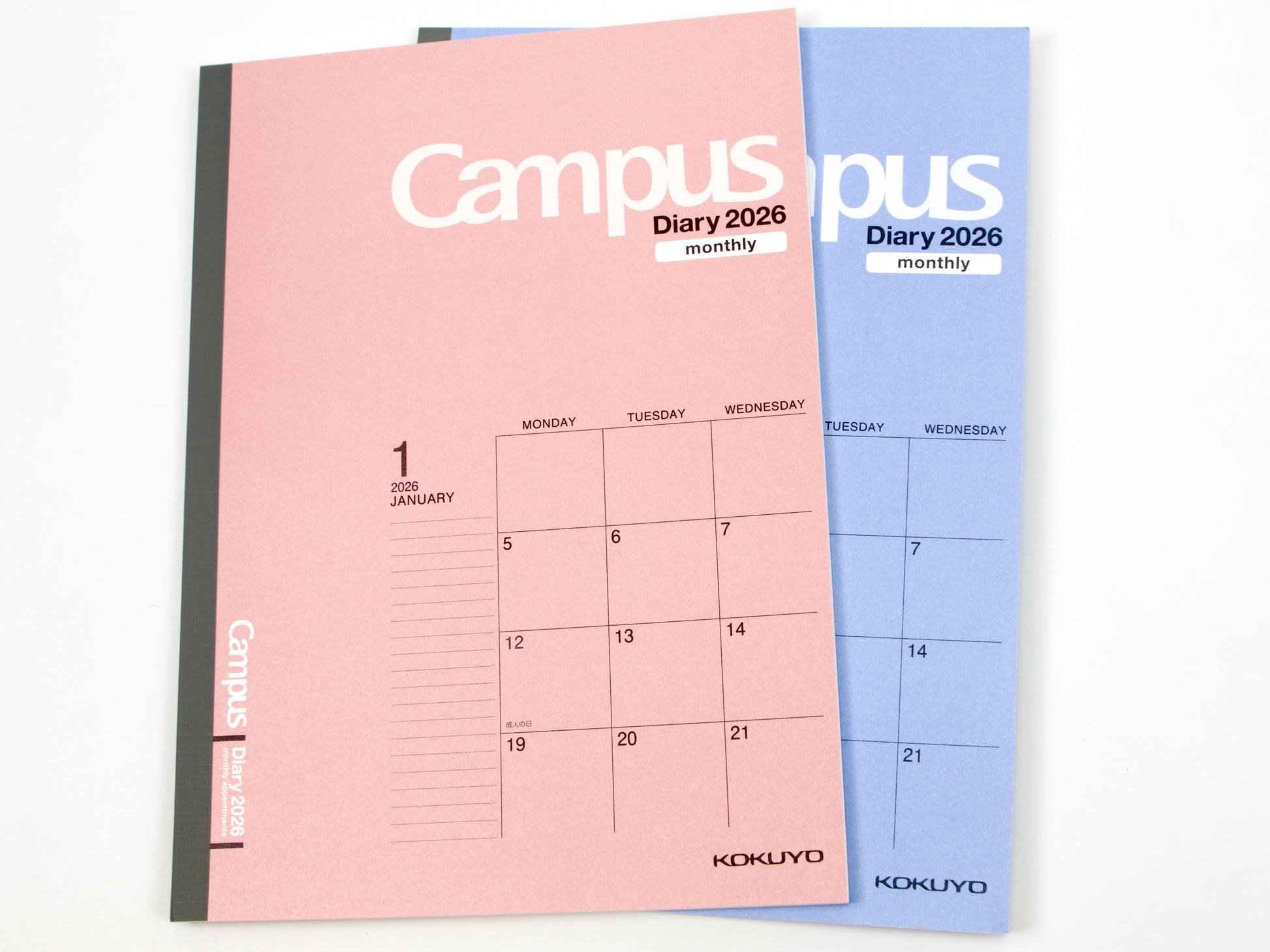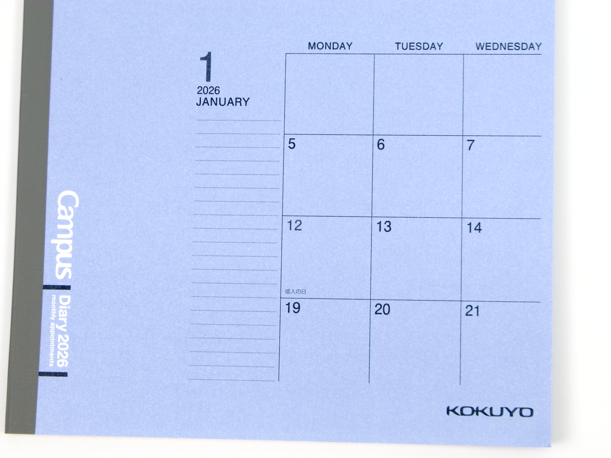 Introducing the Kokuyo Campus Monthly Semi-B5 Calendar for 2026! Includes monthly spreads for December 2025 through January 2027 (14 months), and 32 pages of lined notebook paper. This is a simple, minimal planner using high quality Kokuyo Campus paper.