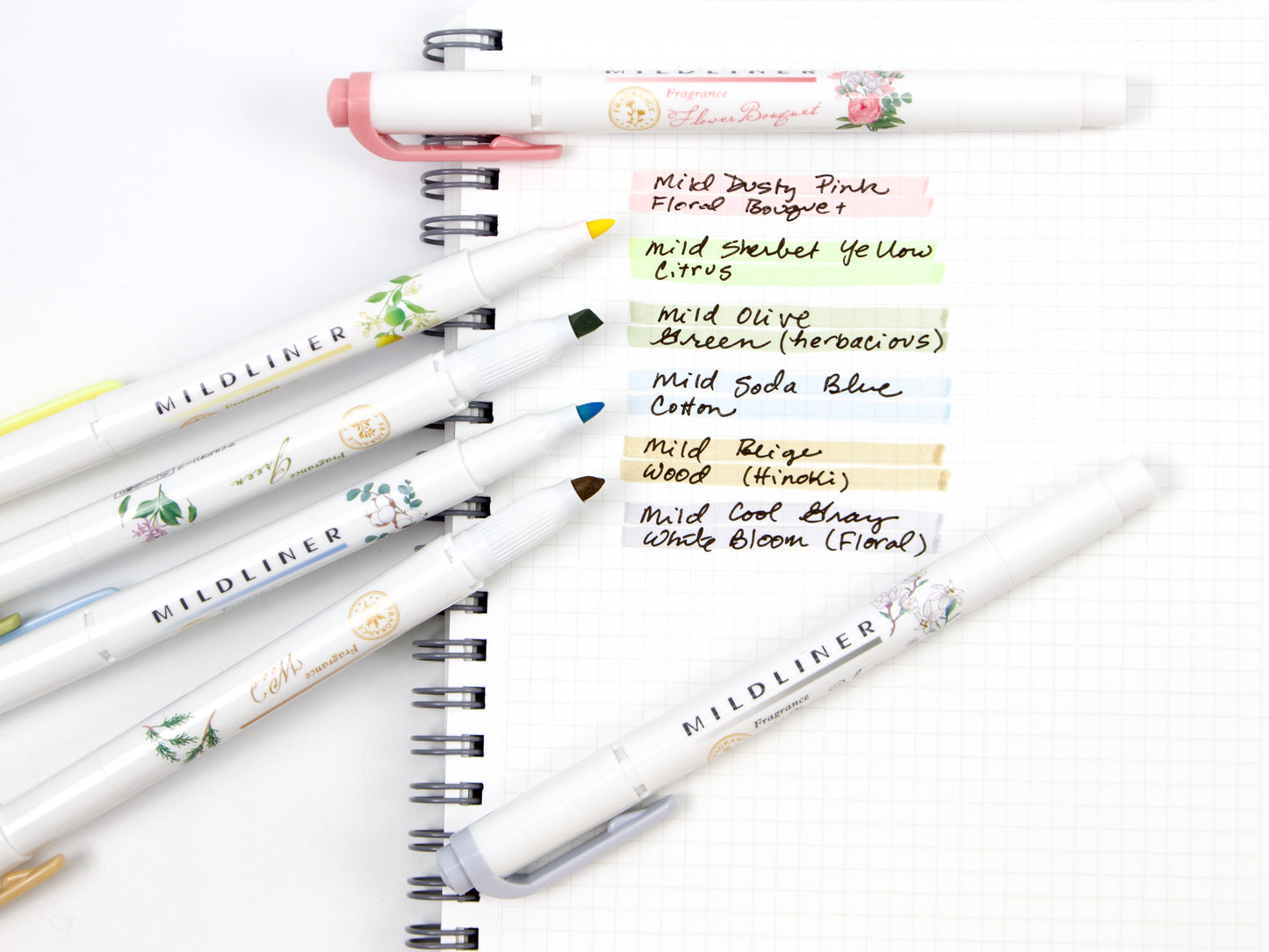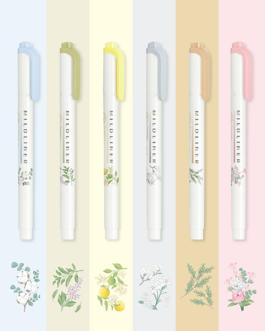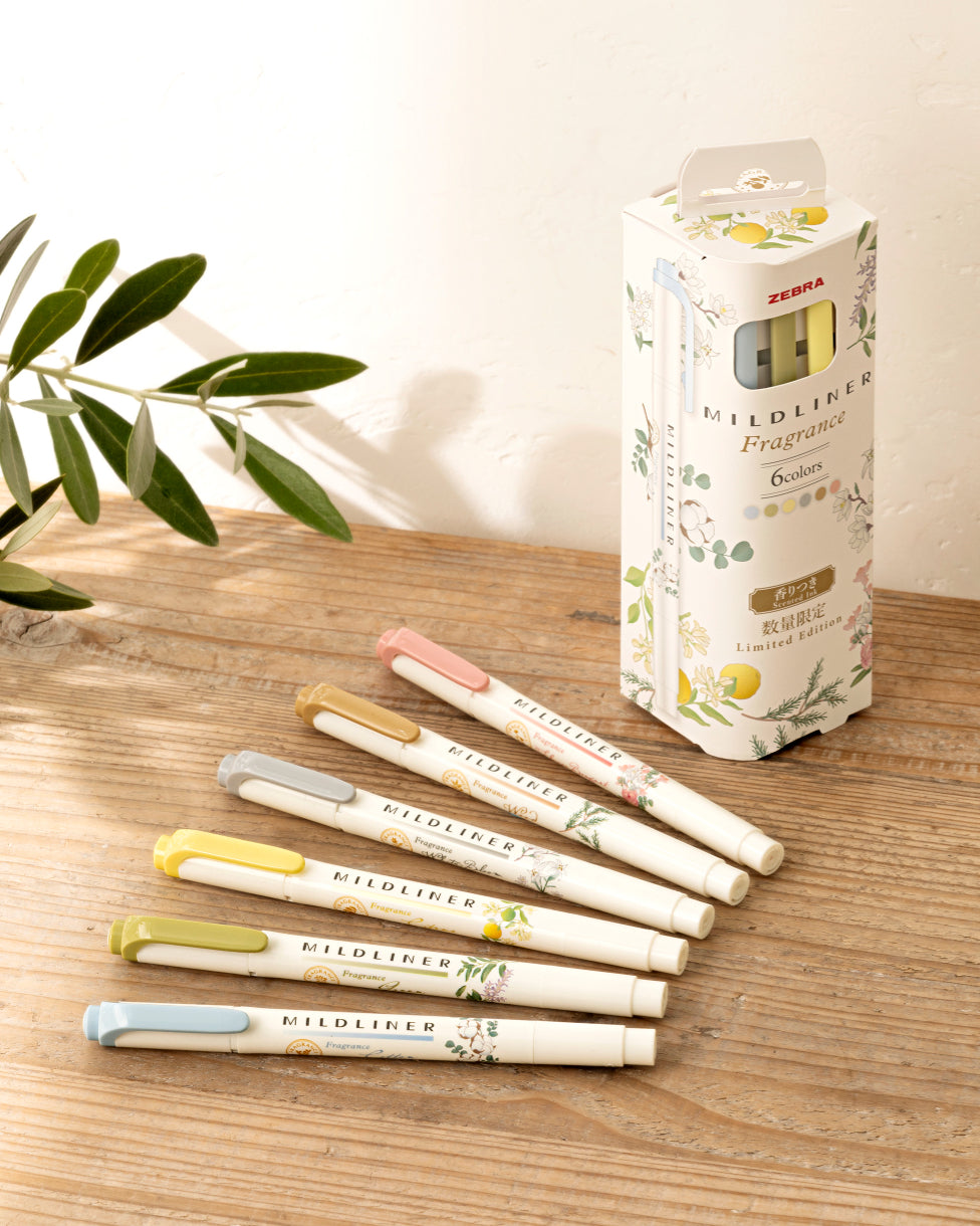 MildLiners have become a tried and true staple to students, artists, and bullet journalers alike! If you're tired of over-bright traditional highlighters, you'll love these gentler hues. And now for a limited time, allow Zebra to celebrate and soothe the senses with the MildLiners Fragrance Series! Six popular MildLiner colors each infused with their own unique scent reminiscent of nature. Find your favorite color and scent combination below, or collect all six!