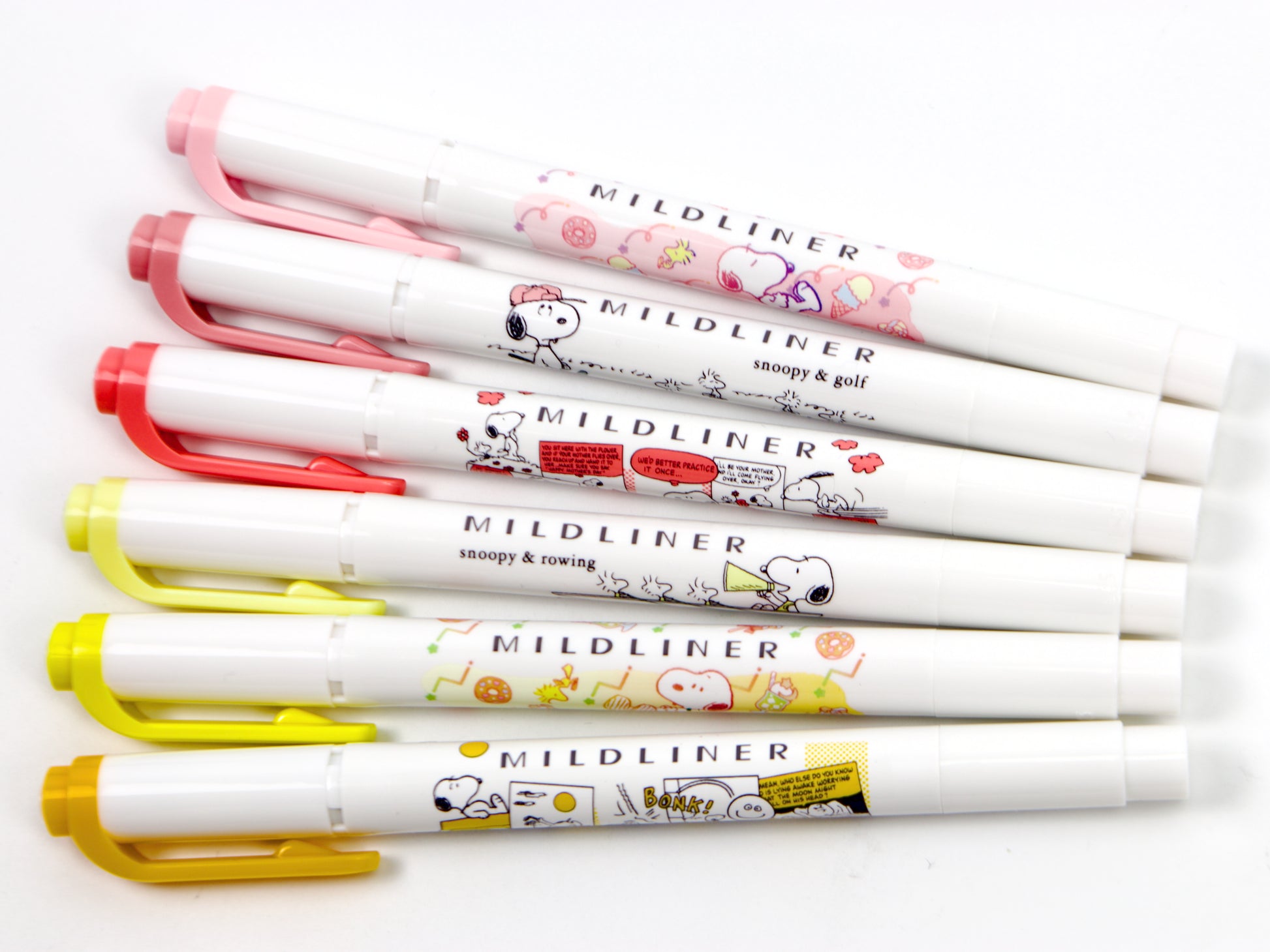 Limited Edition Snoopy MildLiners are available in 6 different Zebra Mildliner colors. Each color has a different Snoopy design on its barrel. Please see below for color - design match.