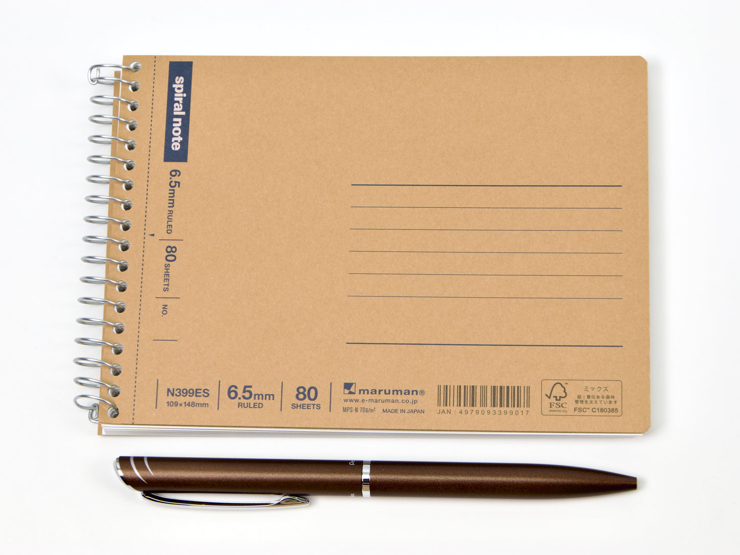 Maruman spiral notebooks in A5 Half Height size, 6.5 mm ruled lines. Each notebook has 80 sheets. Features 70 GSM white paper with soft gray lines. Pages are perforated for easy tear-out. We love this high quality, smooth Japanese paper.