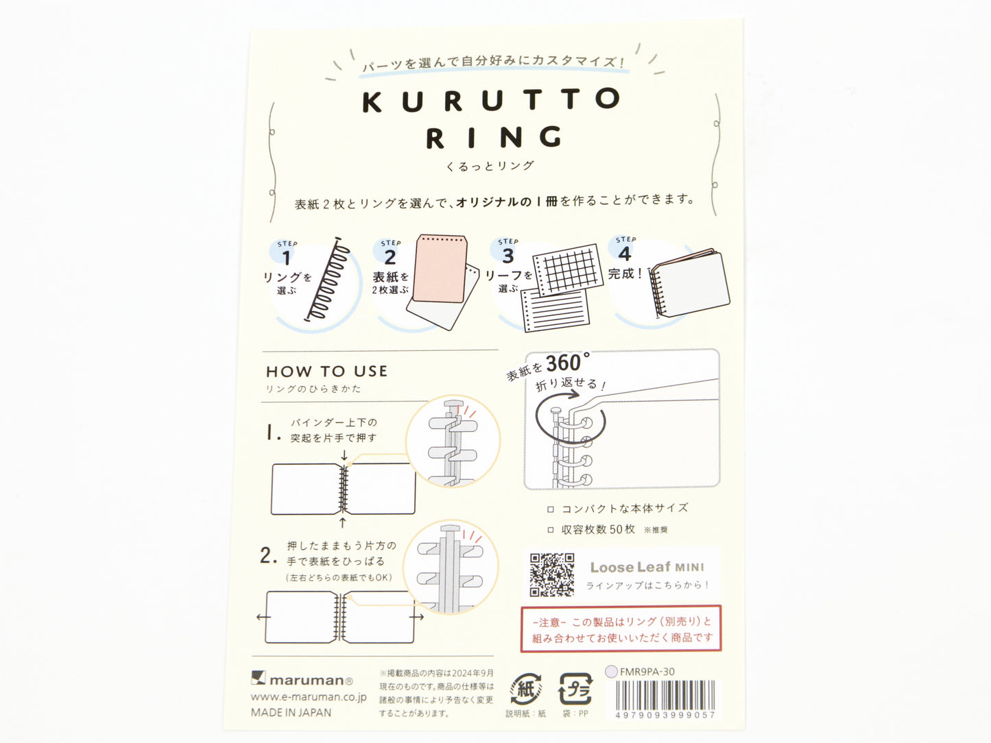 The Maruman Kurutto Ring is a mini binder that lets you create your own book! These additional covers are sold separately for your unique customization or replacement needs. Includes one spare cover.