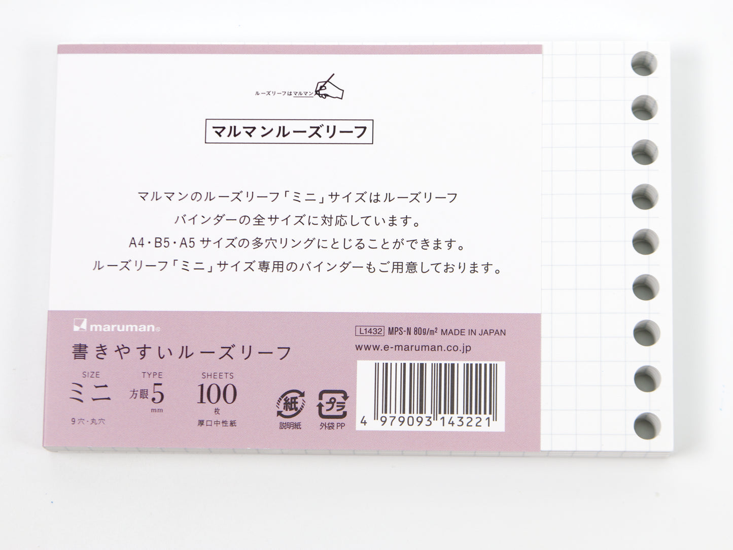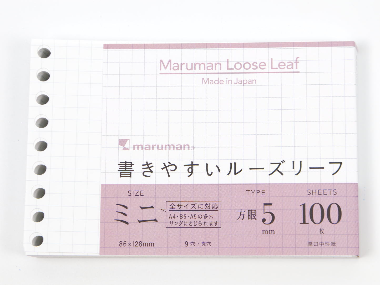 These refills fit the Mini Session Binder and provide 100 sheets of 5mm grid paper. The Maruman Mini Session binder is a handy "one-hand" size perfect for carrying all the essential points! You can also use these sheets in larger Maruman binders, like the B5 and A5 sizes. The Mini Session size is perfect for flash cards and studying.