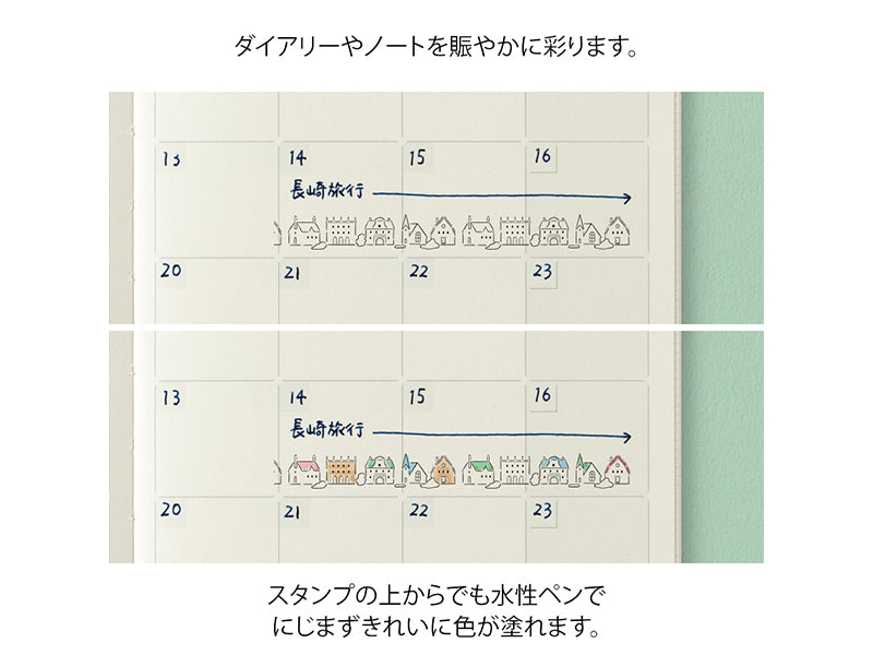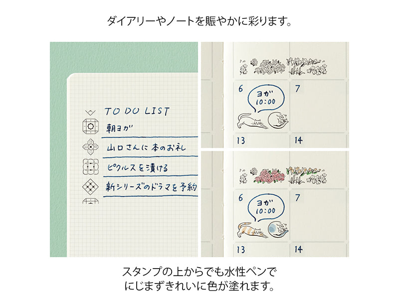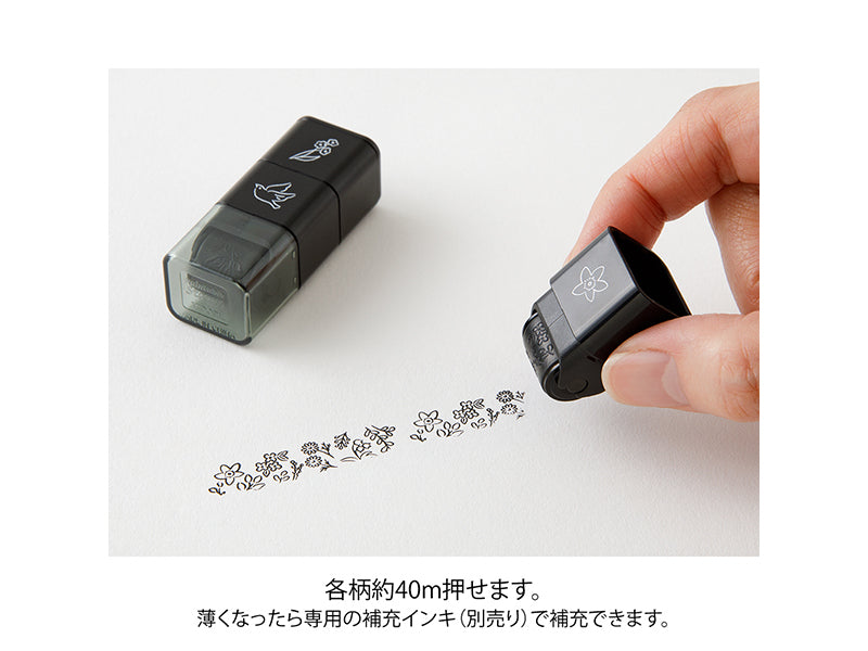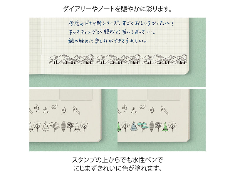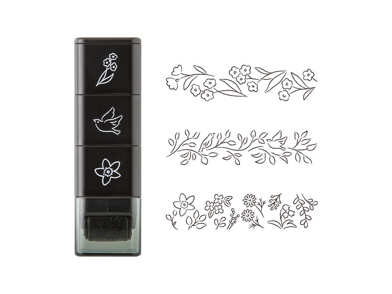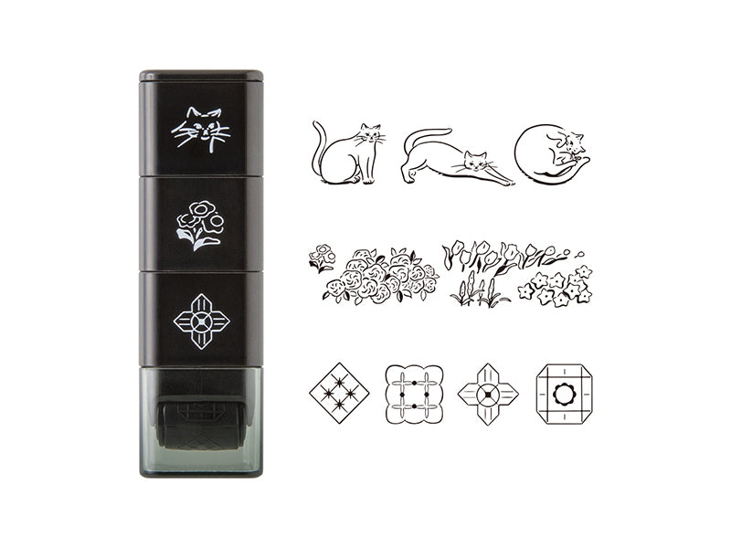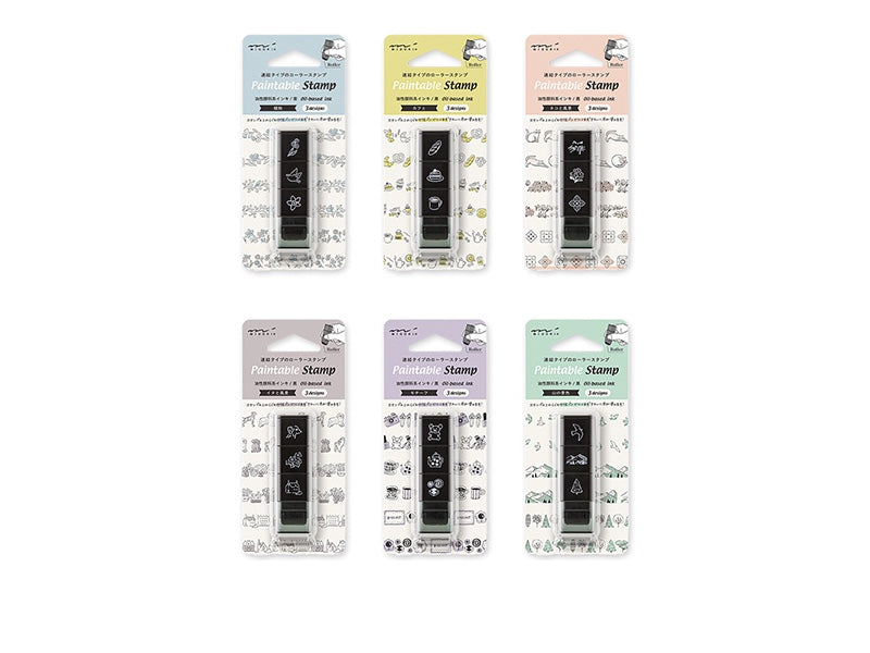 Midori Paintable Stamp Rollers are designed for adding beautiful, continuous patterns! Paintable stamps by Midori are self-inking with oil-based ink, so they pair well with color markers, like the Emott, and gel pens. Each of the three designs in each set can be separated and mixed with other sets since they are stacking.