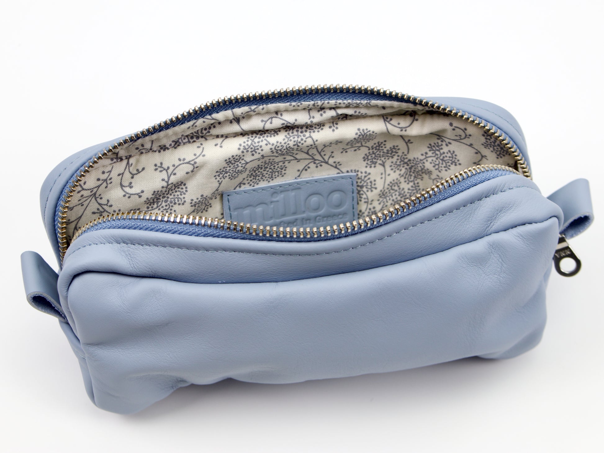 Hand-crafted in Athens, Greece by milloo, The milloo Brick is a boxy shaped pen case that easily holds at least 40 of your favorite pens! Even longer brush style pens will fit comfortably in this pen case. One external pocket and one internal pocket help with additional organization. In addition to being perfect for stationery, this pouch is a great size and shape for a toiletries pouch or to provide some organization to your daily purse or bag.