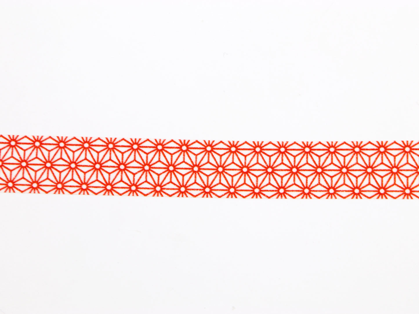 1 roll of 15 mm X 7 m Warm Asanoha (hemp leaves) design in your choice of gold or crimson red. Asanoha is a traditional symbol of growth, resilience, good health, and prosperity.