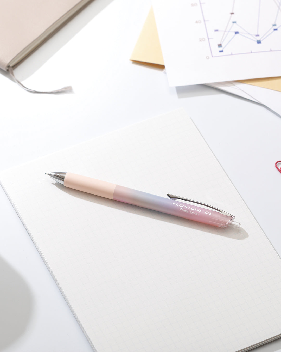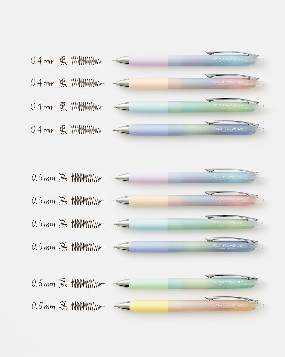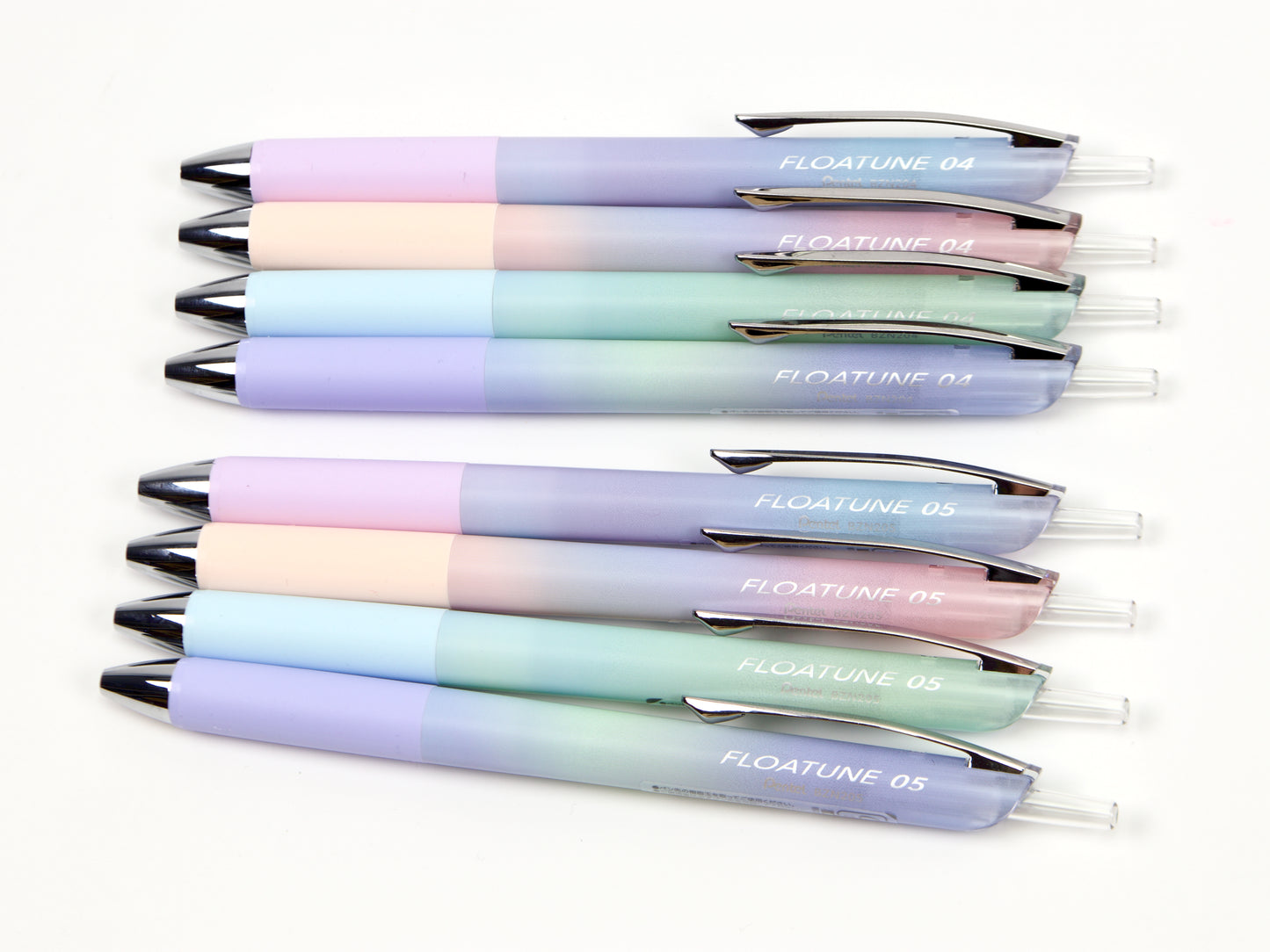 The Pentel Floatune is ready to make your writing experience like floating on air! These dreamy ballpoint pens feature a pastel gradient body evocative of morning light. The ink and pen tip are expertly designed with cushion technology to create smooth, confident ink flow and frictionless writing. A "high definition chip" has been adopted in the metal tip to optimize the ink flow. Just consider the clarity of writing when your mind is free to go with the flow with an effortless writing tool. The Floatune is meant to inspire both visually and with technical prowess.