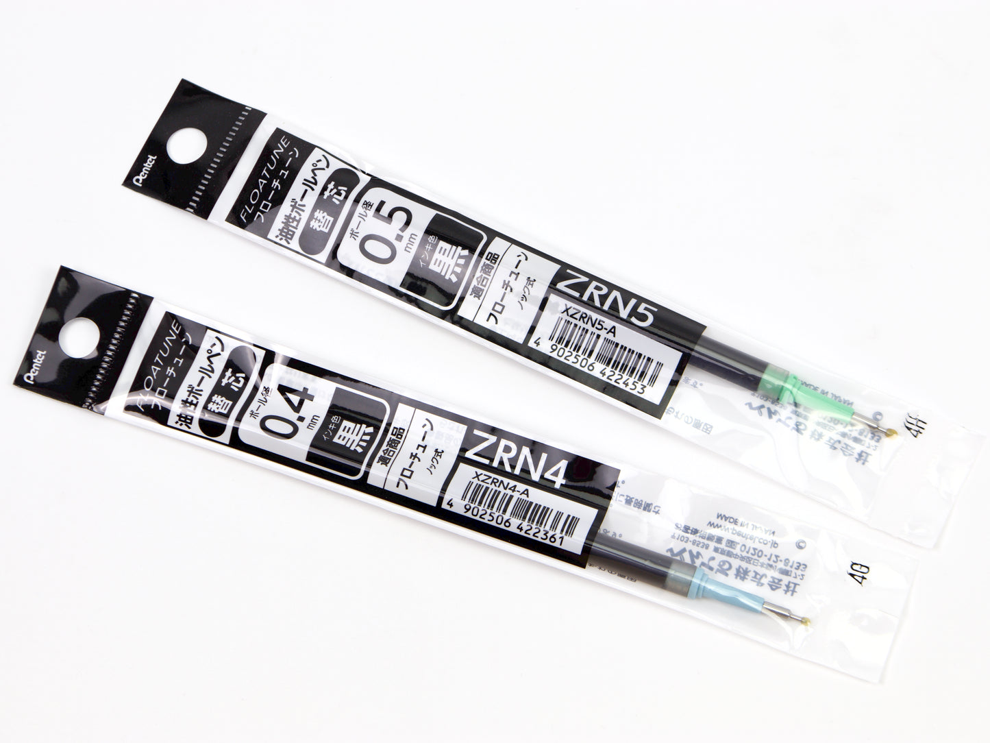 The ZRN5 refills the Pentel Floatune. The ink is oil based, yet smooth as butter! Choose from .3mm, .4mm and .5mm in three colors.