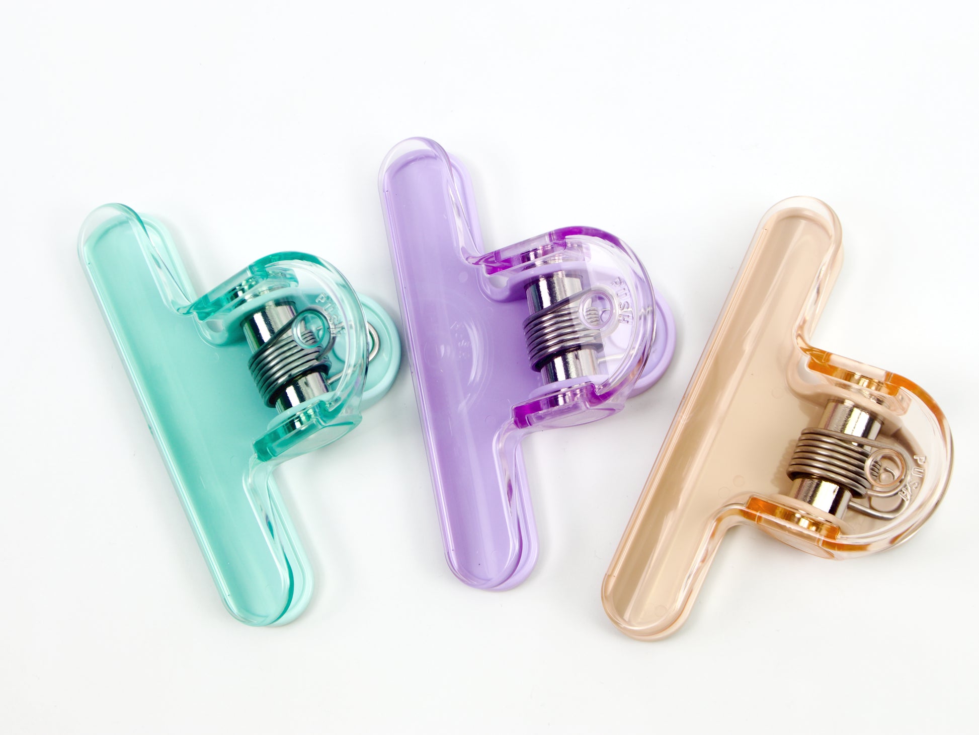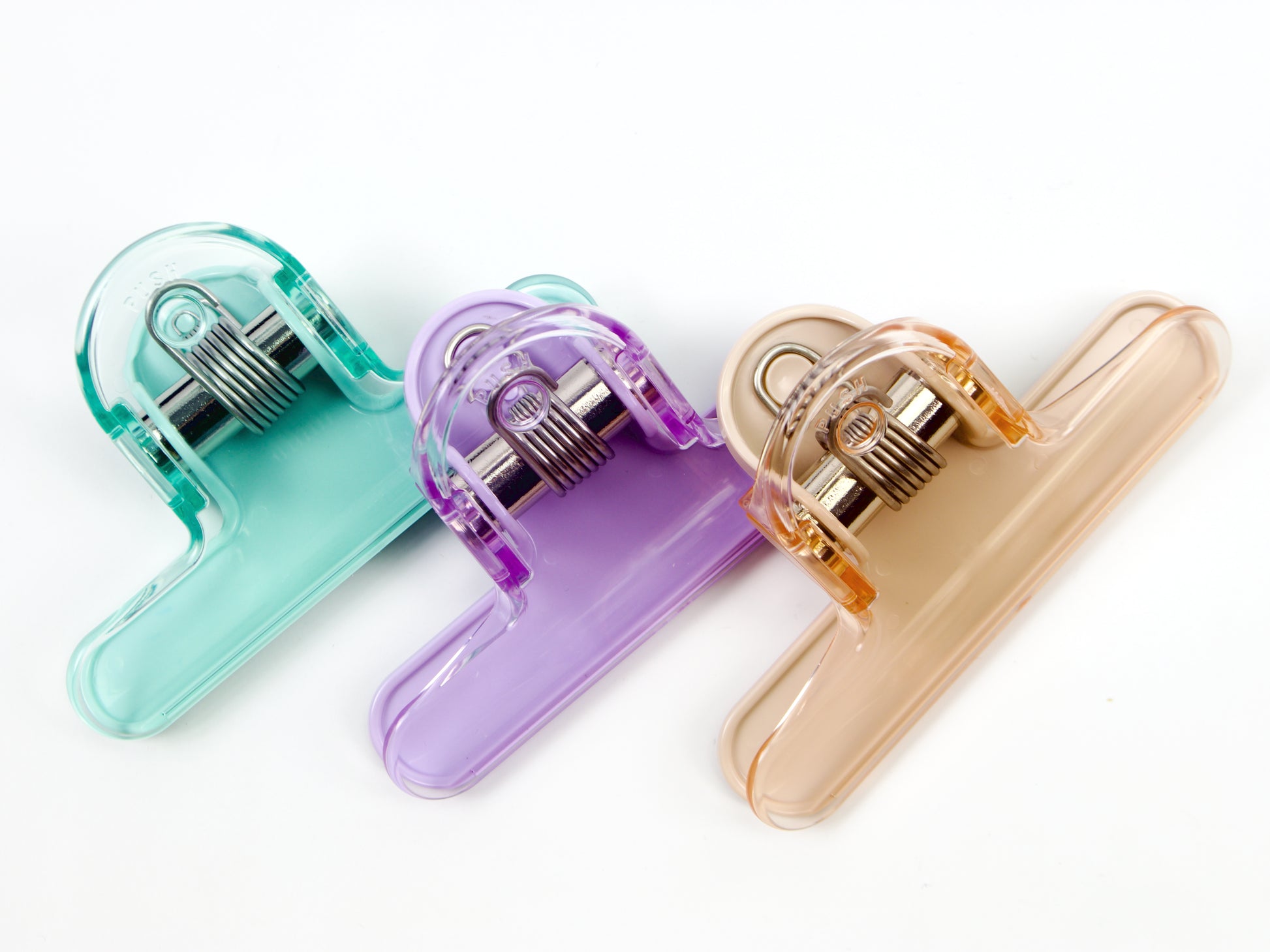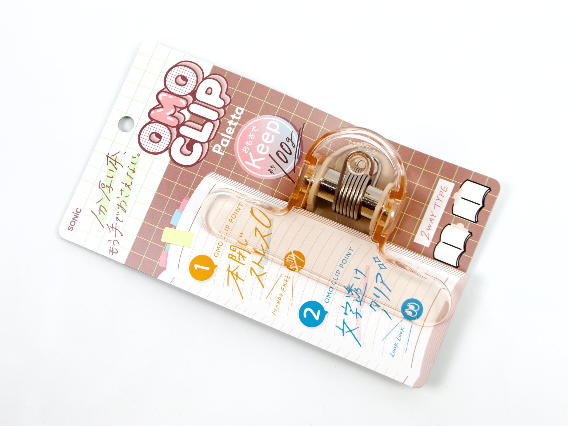 A big, strong clip that keeps you on the page you want to see! Choose from mocha beige, green, and violet. This clip is designed to use both along the side of a book to hold pages open and along the top to lay your book open. It is also great to use with music books!