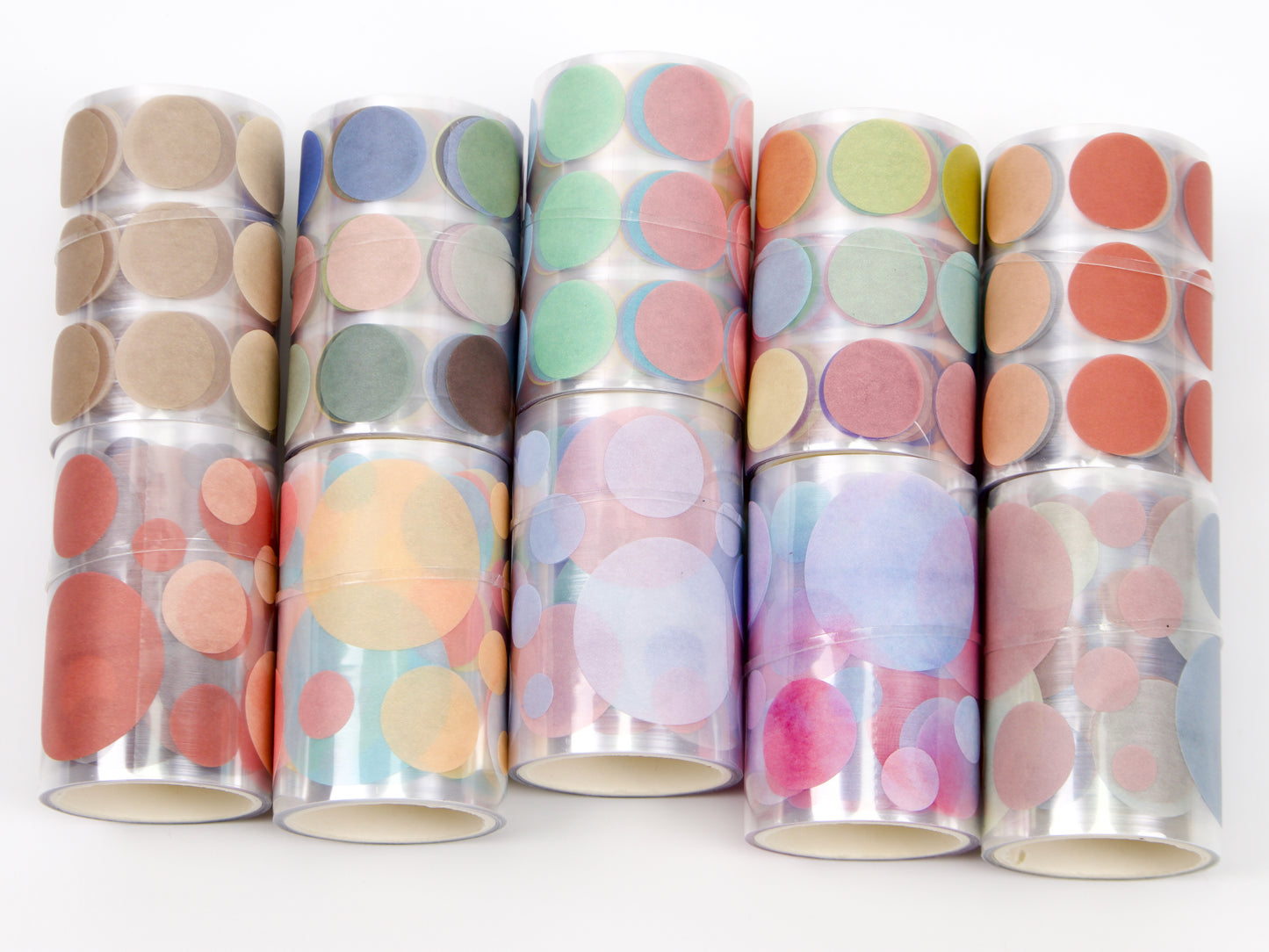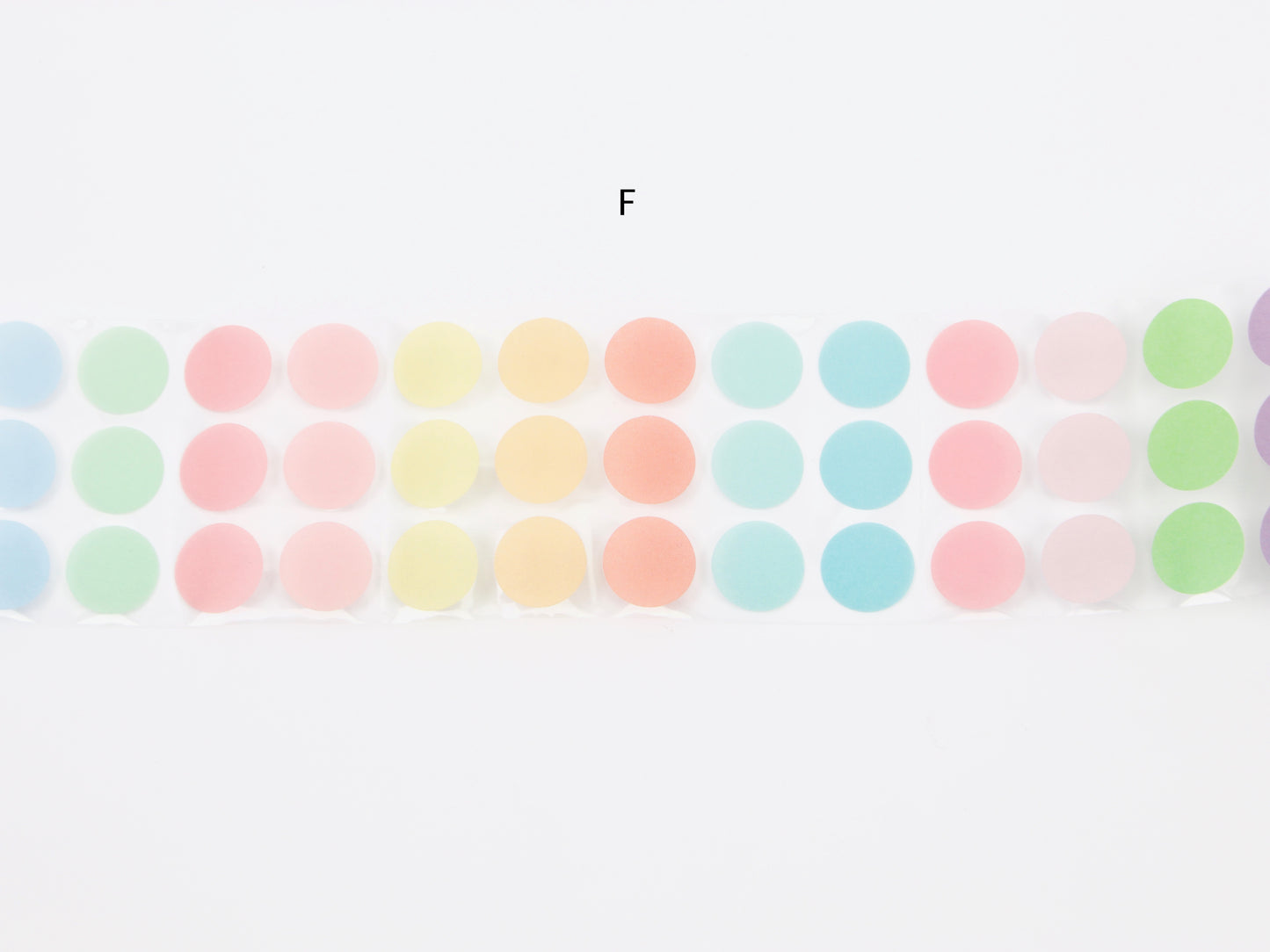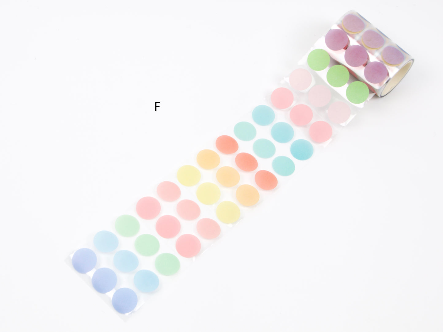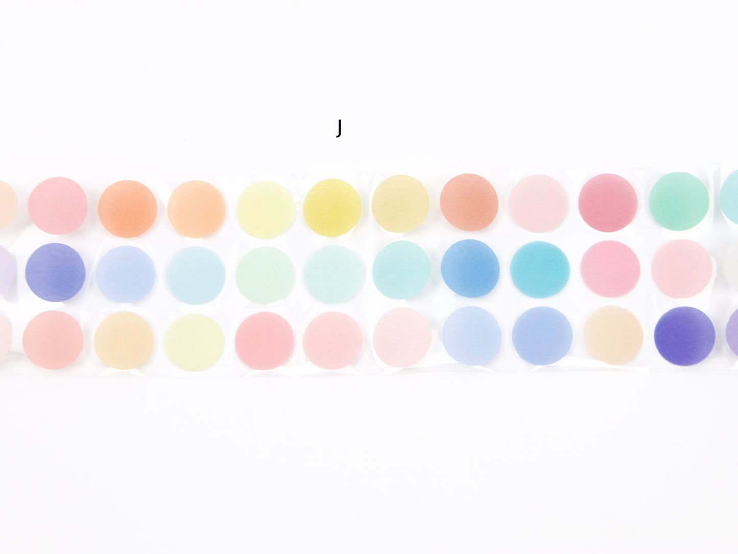 Sun-Star transclucent dot stickers are great for planning and journaling! Rolls A - E have 180 stickers that range from 6-33mm dot size. Rolls F - J have 300 stickers of 17mm dot size. Choose from 10 color-ways!