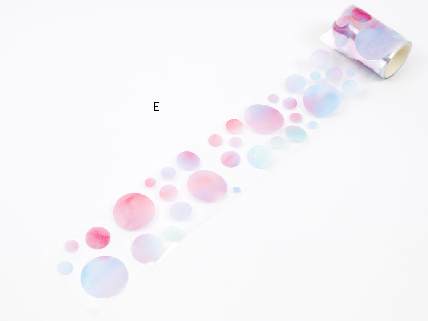 - E: Watercolor dots in various sizes