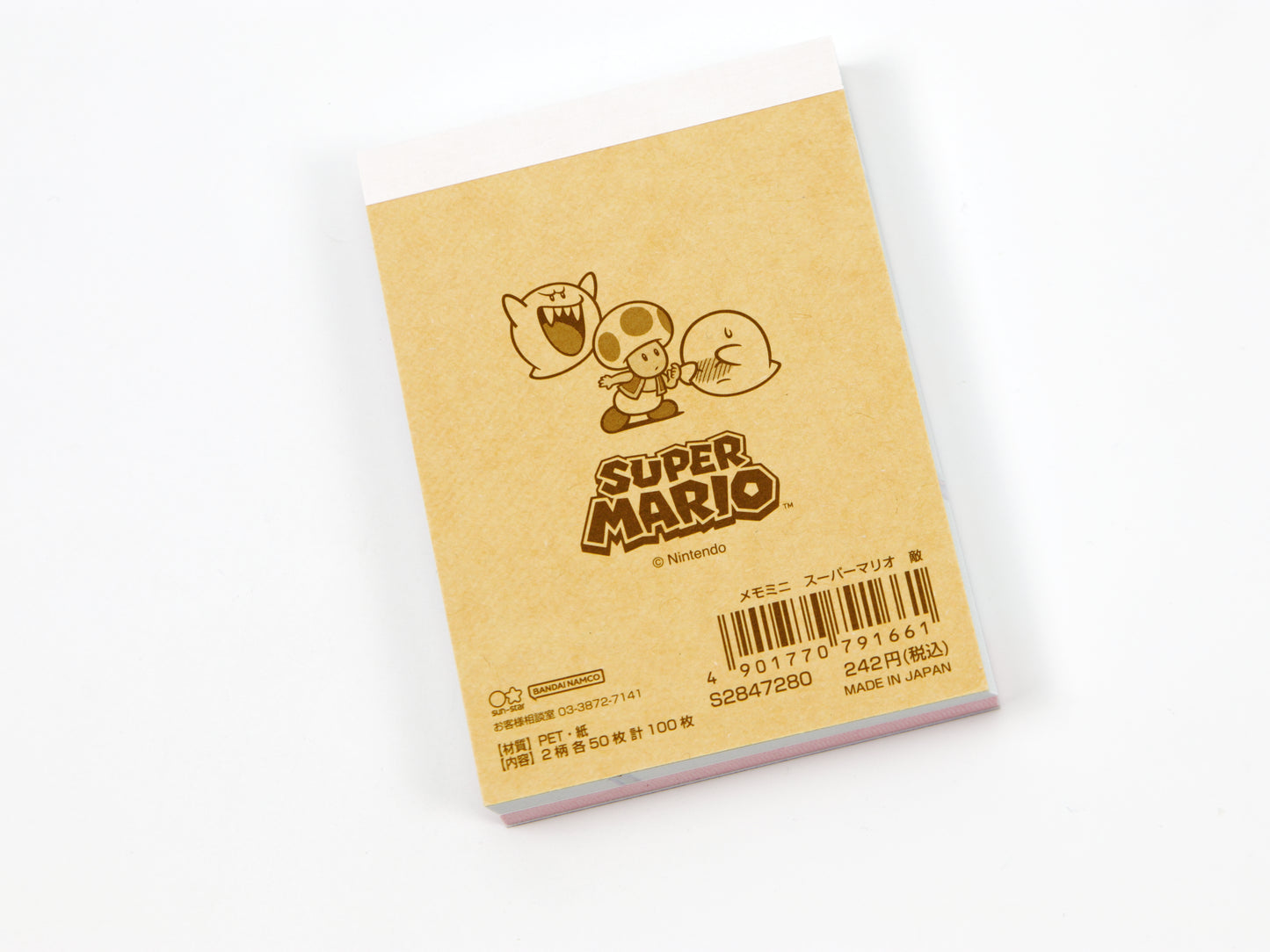 Super Mario mini memo pad featuring two different Super Mario designs! The memo pad pages have 2 patterns X 50 sheets each, for a total of 100 sheets. Made in Japan by Sun-Star. Memo pad measures: 2.25" X 3.25".