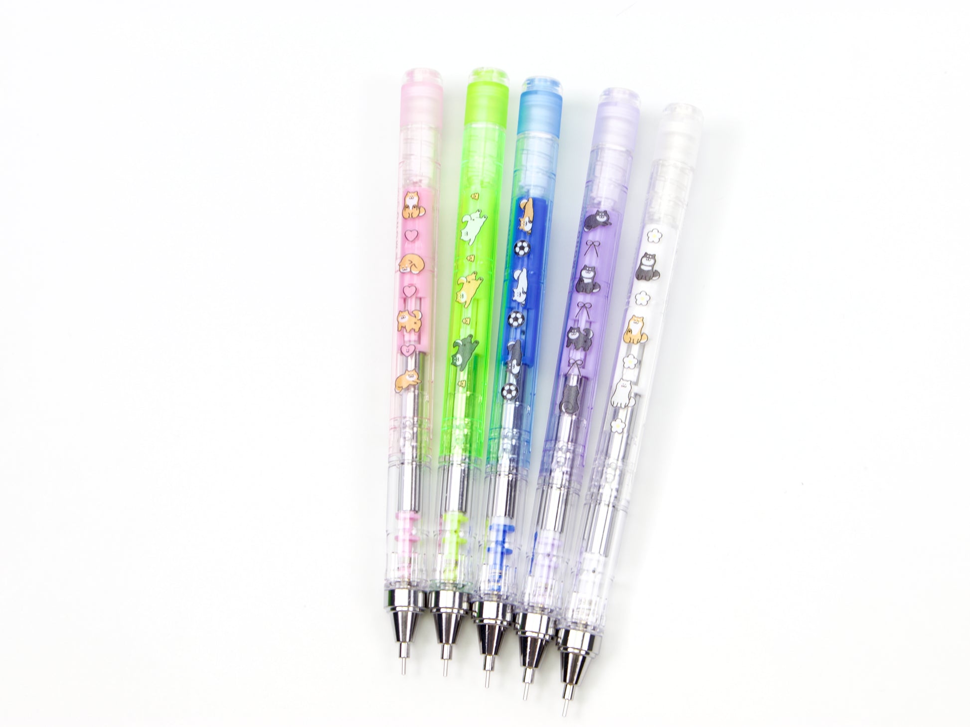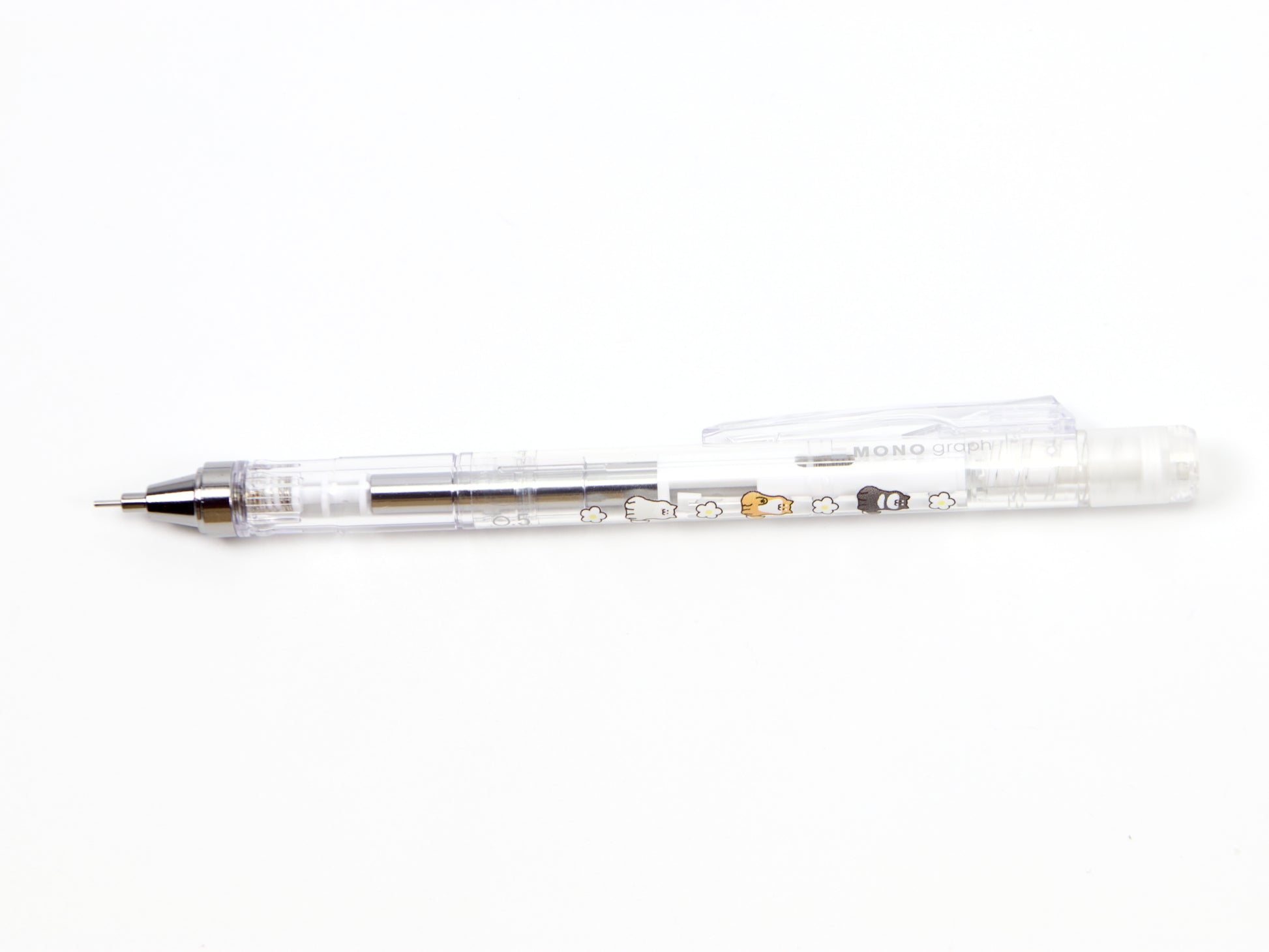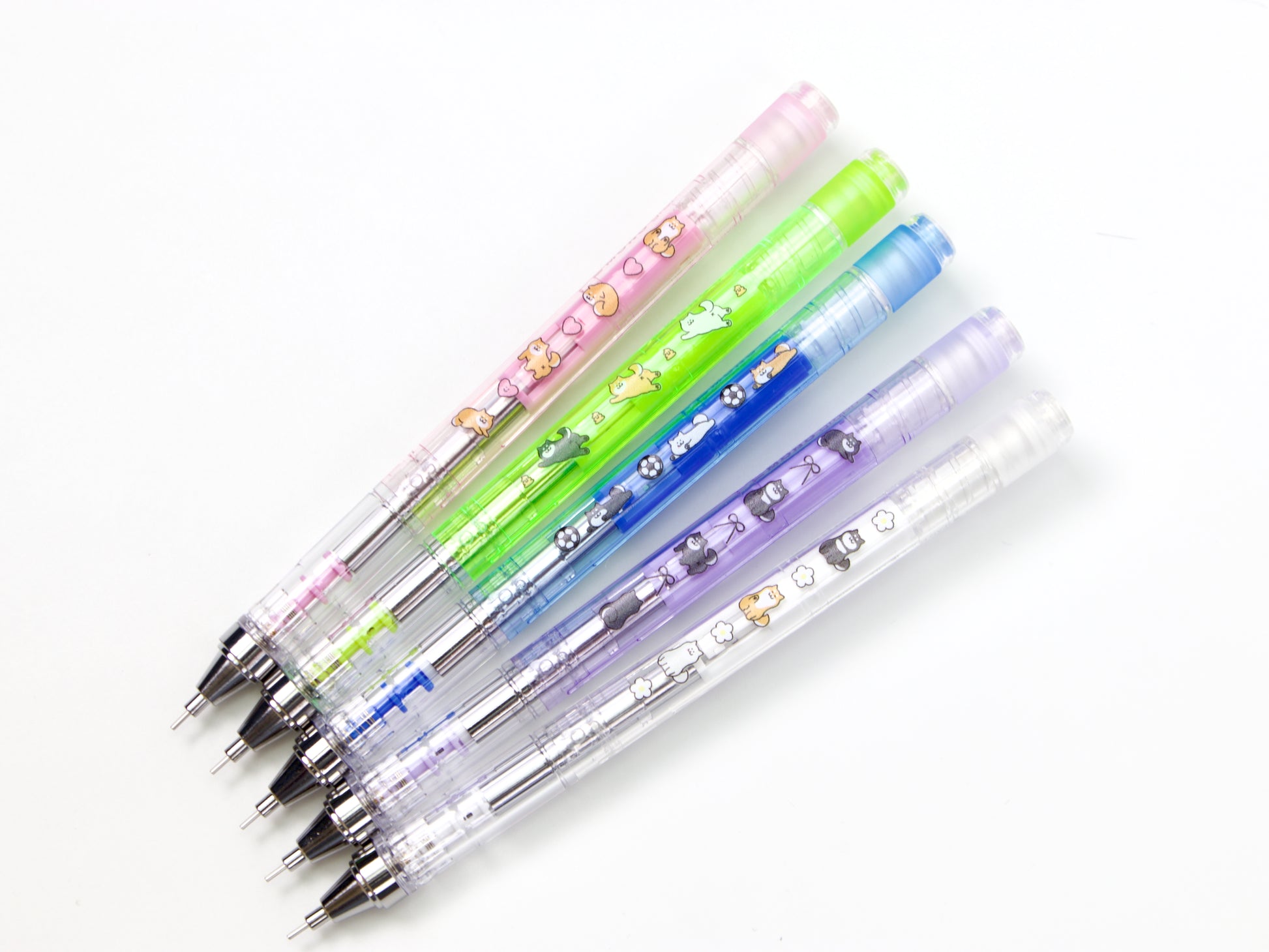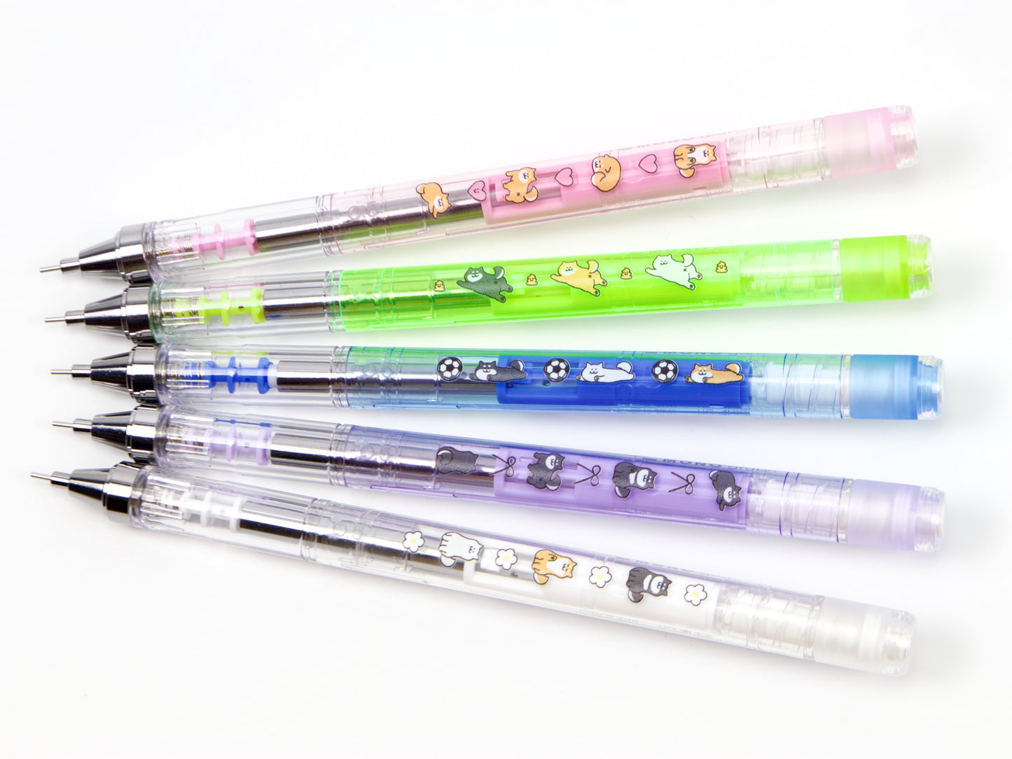 Playful Shiba Inu pups adorn these colorful limited edition transparent barrels, each with their own special motif. Choose from Purple Bow, Blue Soccer Ball, Gray Flower, Green Poo, and Pink Hearts, or collect them all! The grip is transparent so you can see the Mono Graph mechanism hard at work!