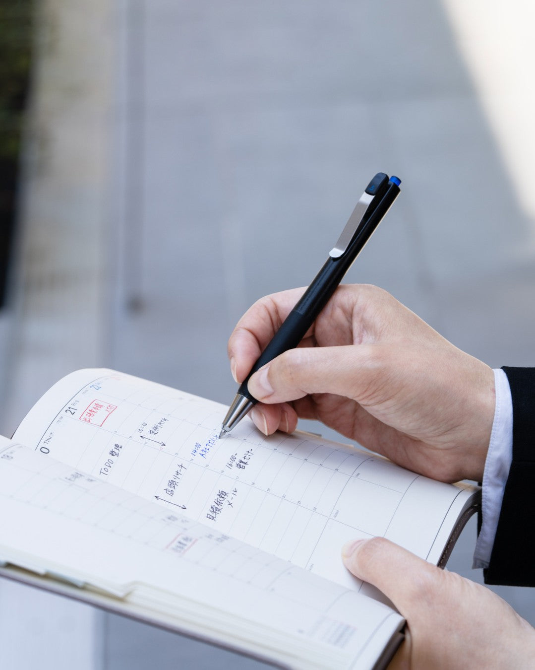 The Zebra Blen U is the latest innovation Zebra has made to the Blen family. And now, Zebra has expanded their lineup to include red ink and blue ink in sleek black pen bodies. The U still boasts a low center of gravity and a system that controls writing vibration and blurring, making your writing experience as stress-free as possible. But the Blen U is not simply a relaxing pen; it lends itself to confident, reliable writing and usability. Equipped with a strong and stylish binder clip and "S oil-based ink", the U is specifically designed to be your pen in unstable situations. Jotting down a quick note while running errands or brainstorming out of pocket with your Blen U will deliver strokes as bold and confident as your new idea, even with a light touch. Dense, smooth "S" oil-based ink, now available in classic Black, Blue and Red in both .5mm and .7mm tip sizes. Refill with the Zebra Blen U refill.