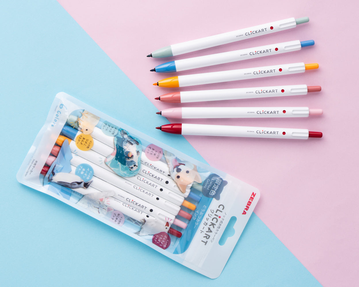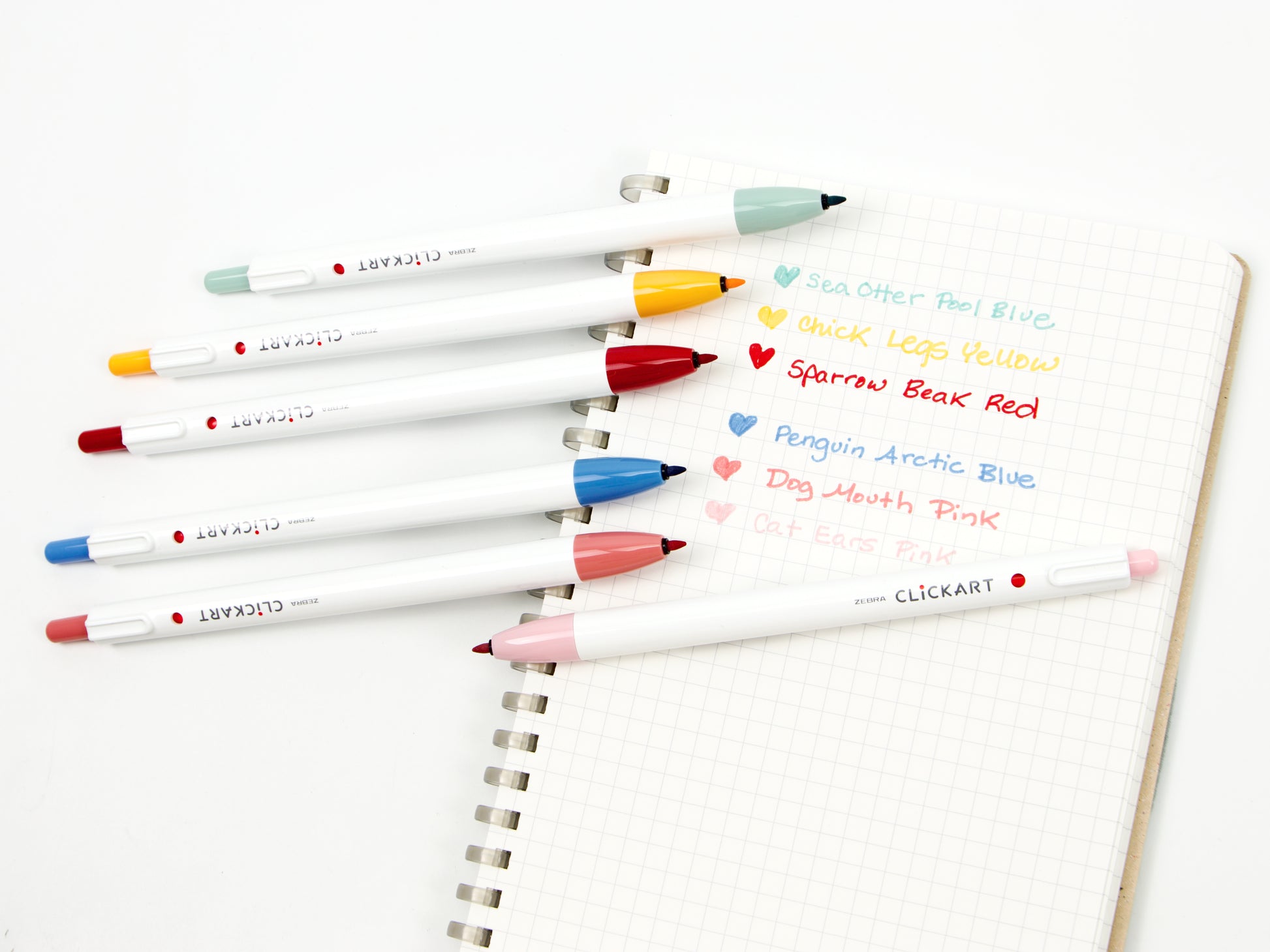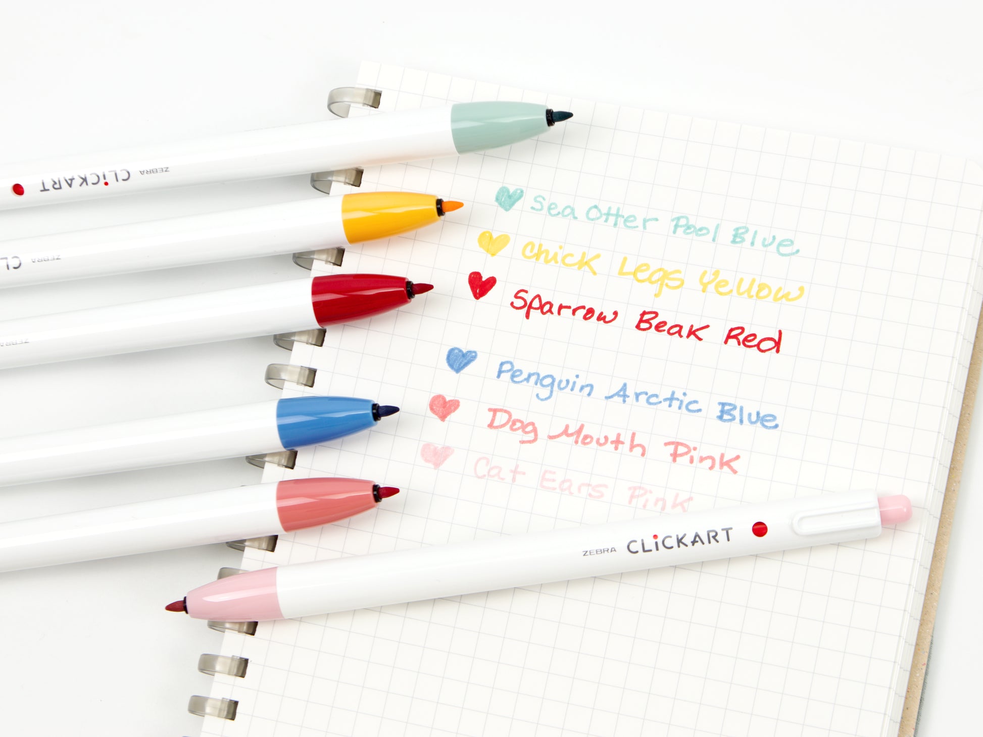 The Zebra Click Art is an innovative fine liner marker pen that features a click-top instead of a cap like most fine liners. The ink has been formulated to accept moisture from the air, which keeps it from drying out easily. The Zebra Click Art writes a .6mm fine line and the limited edition fairytale series comes in 14 beautiful colors! It is a fantastic pen for bullet journaling, planning, homework, work diagrams, and planning. These limited edition Animal Colors are meant to be cozy, cute, and inspiration for your next project! We love the fauna-influenced tones and how beautifully they go together. Collect all 6!