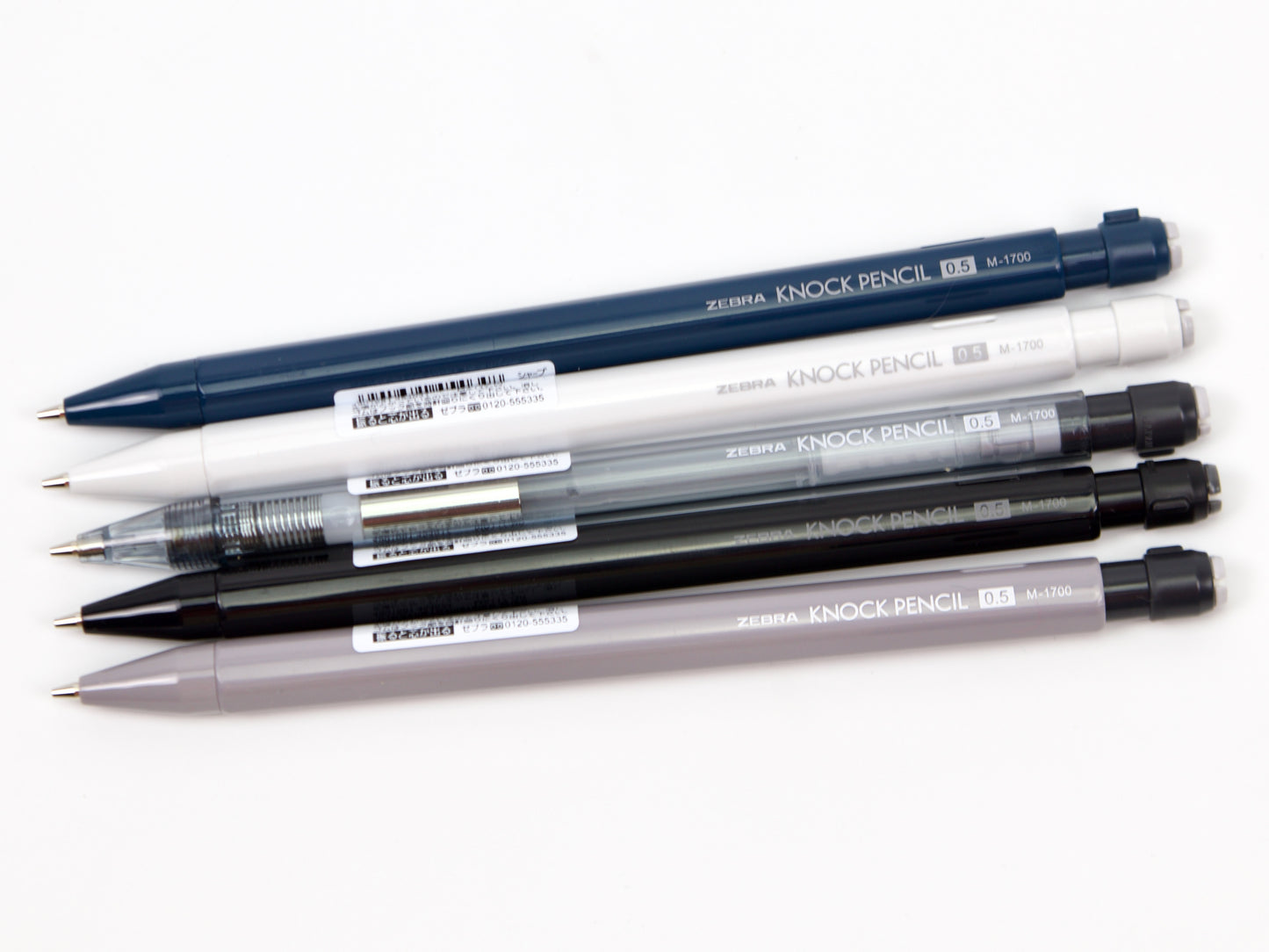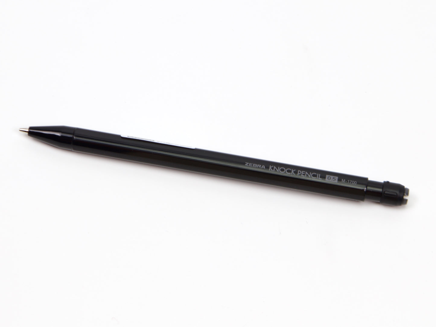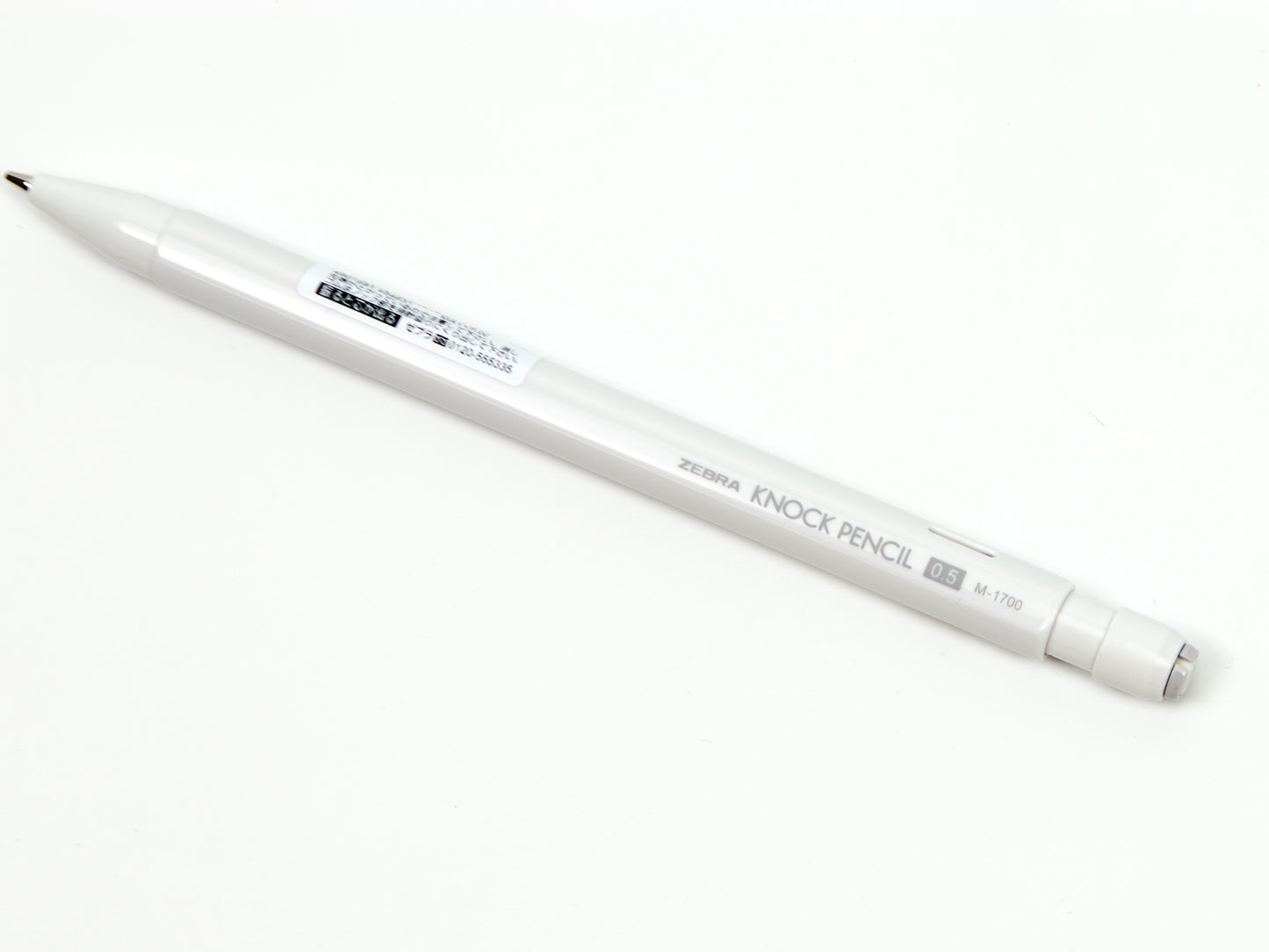 The Zebra Knock Pencil M-1700 is a mechanical pencil with a soft hexagonal shaft like a wooden pencil. There are no grip parts and the shaft is seamless, so you can hold it anywhere. It is equipped with a shaker function that allows the core to come out just by shaking. You can quickly extend the lead without changing your grip. The long, twist style retractable eraser does not use a cap, so maximum efficiency of use has been planned with this pencil.