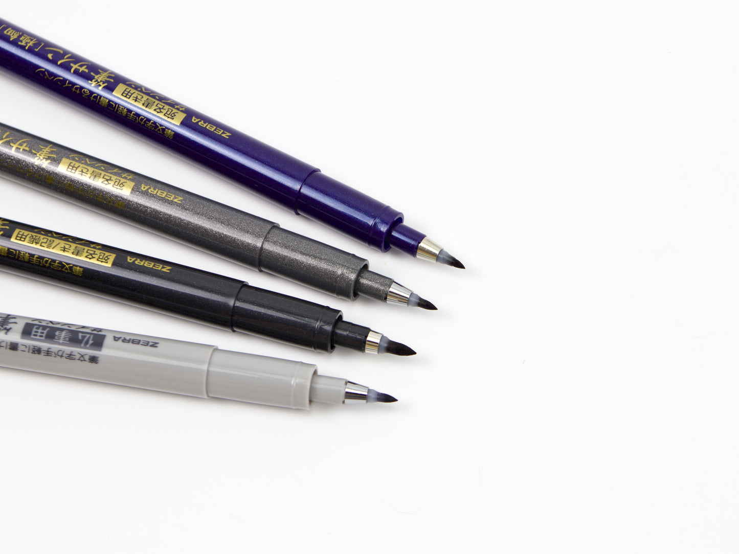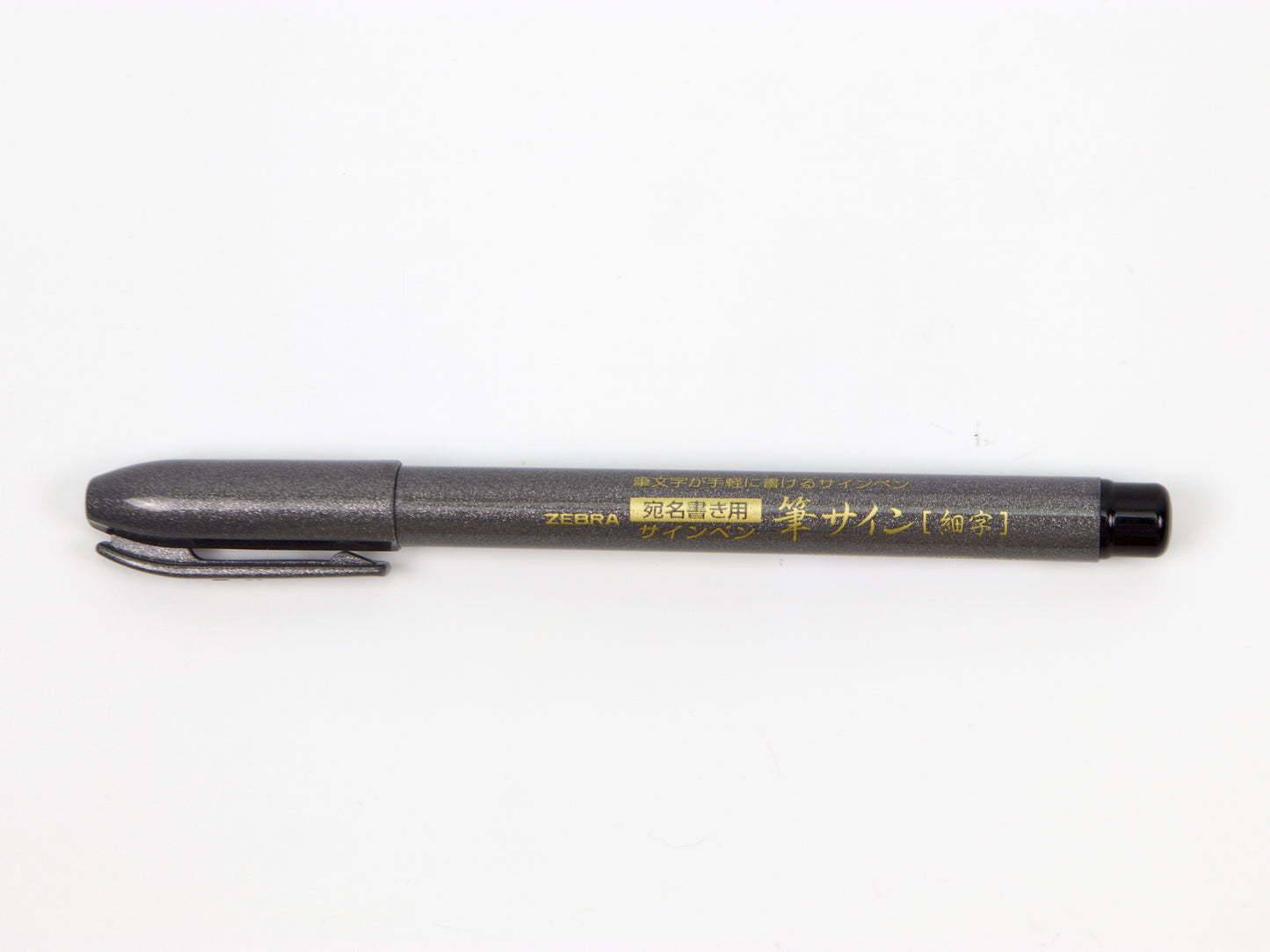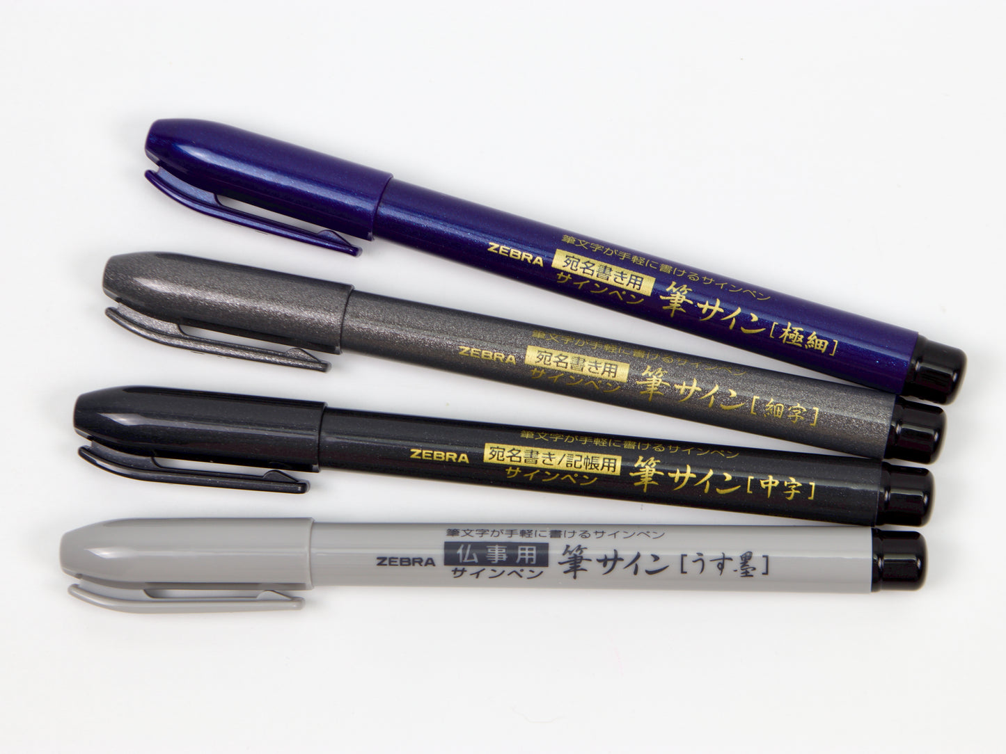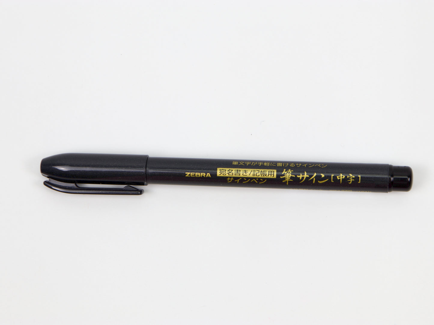 Zebra's Signature Brush Pen has a unique style brush tip that aids you in easily writing calligraphy with the feel of a felt tip pen. Available in three tip sizes, plus a light ink (gray) option. Its carbon ink doesn't run or fade. Perfect for postcards, cards, and other memories.