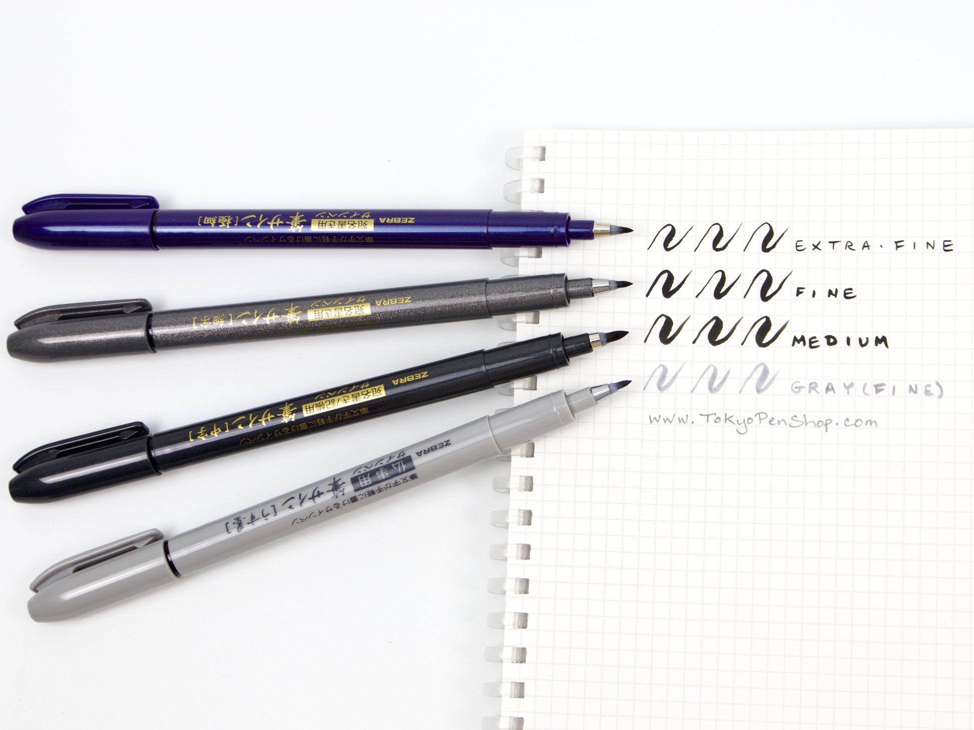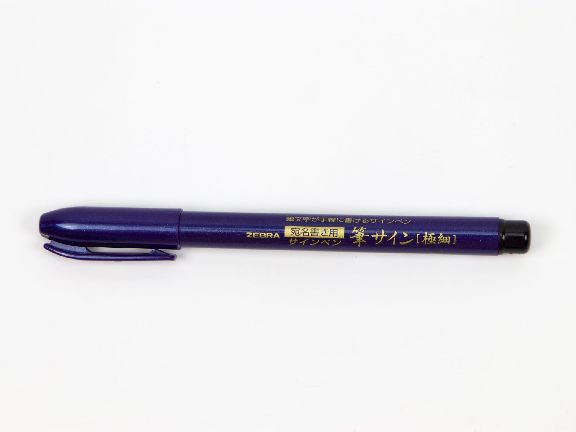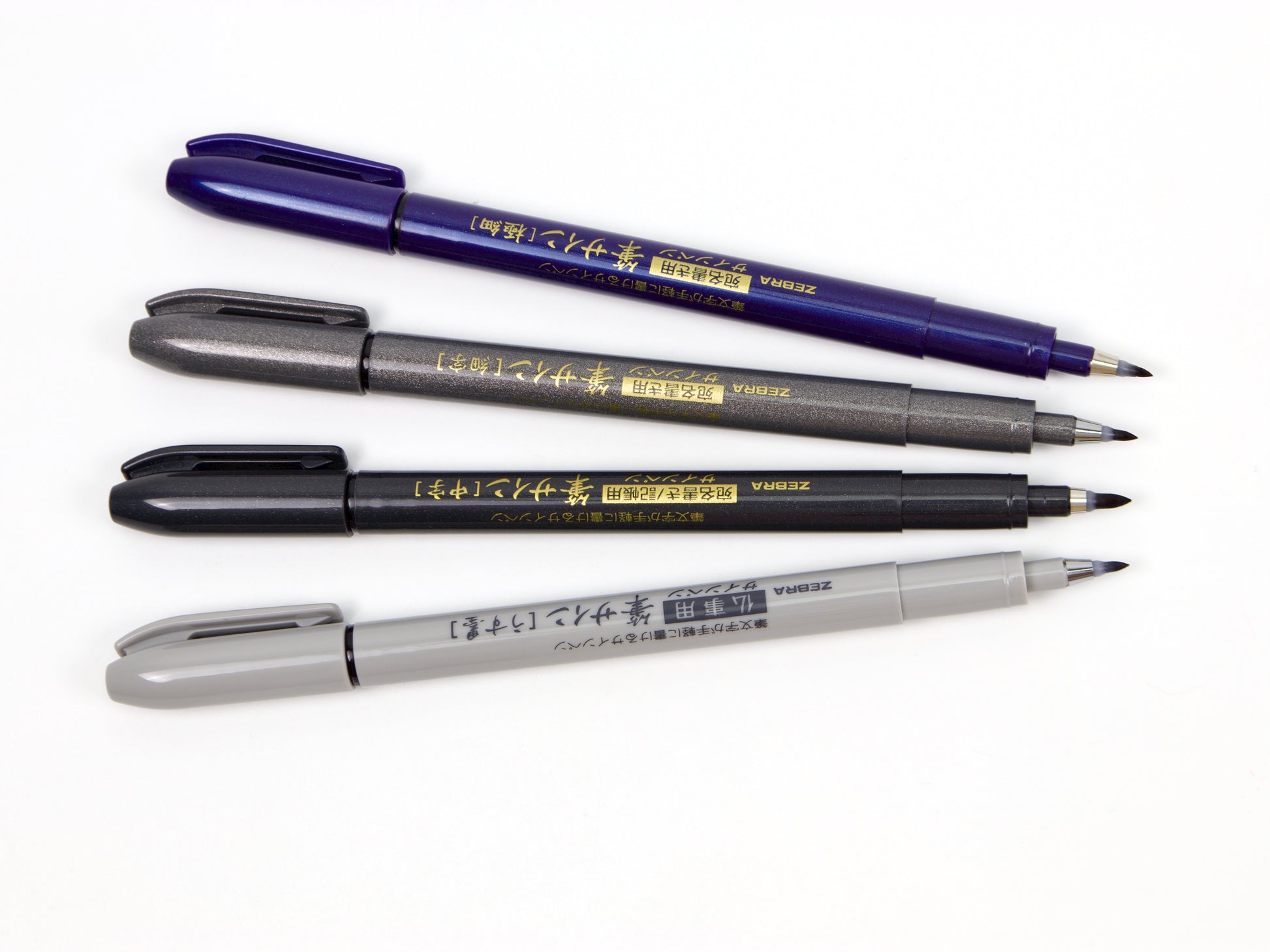 Zebra's Signature Brush Pen has a unique style brush tip that aids you in easily writing calligraphy with the feel of a felt tip pen. Available in three tip sizes, plus a light ink (gray) option. Its carbon ink doesn't run or fade. Perfect for postcards, cards, and other memories.