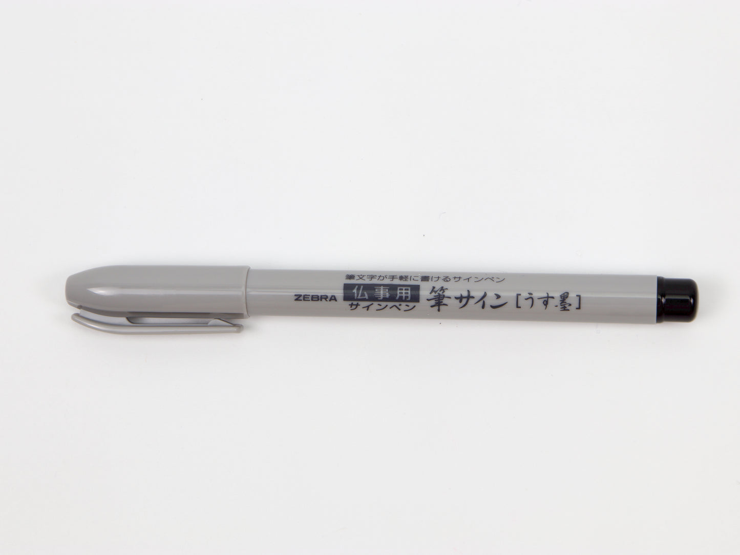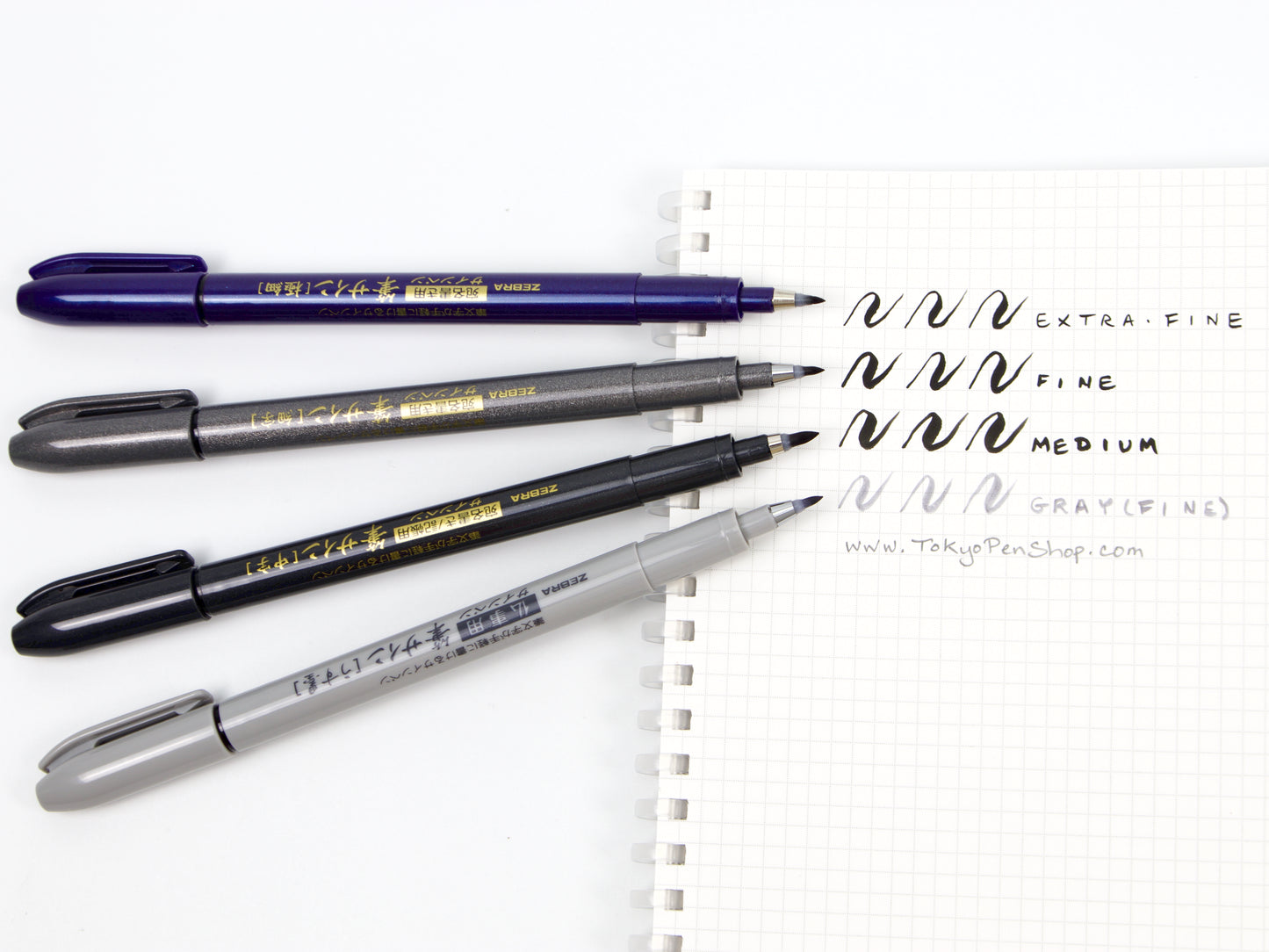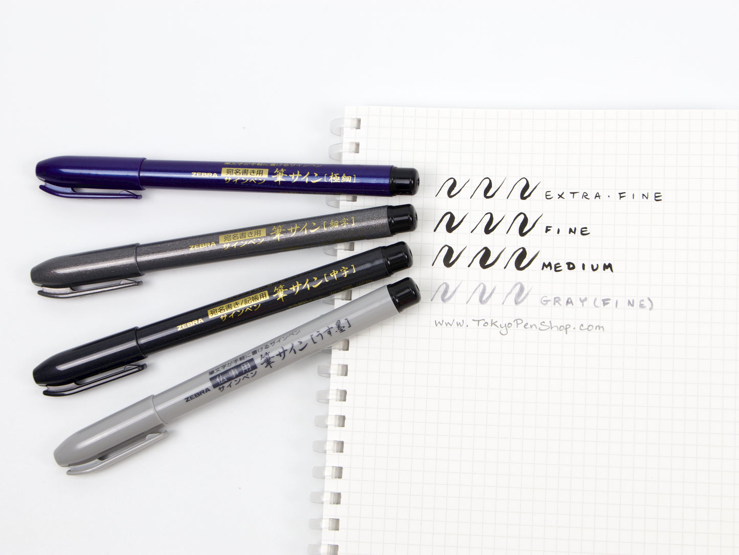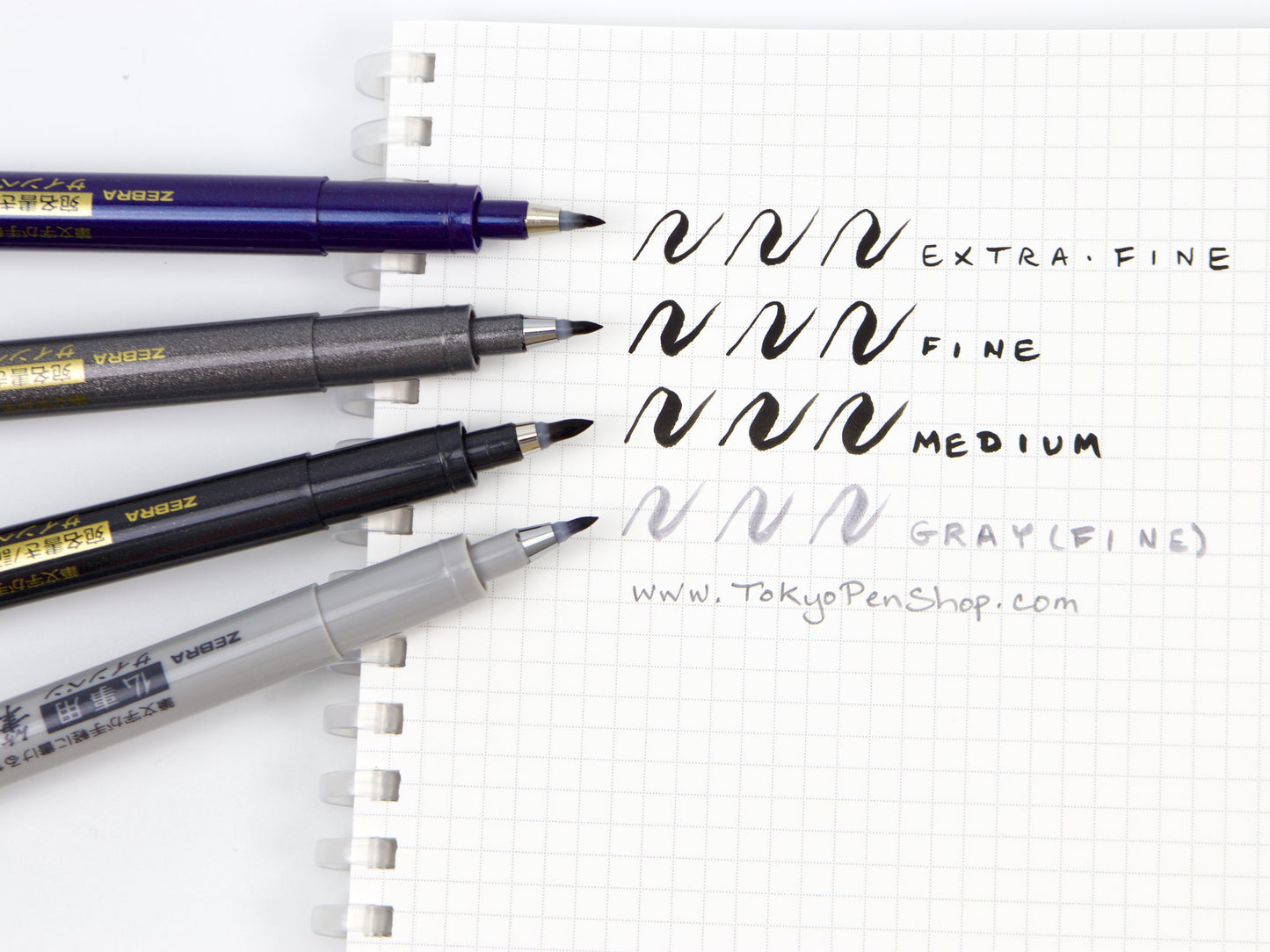 Zebra's Signature Brush Pen has a unique style brush tip that aids you in easily writing calligraphy with the feel of a felt tip pen. Available in three tip sizes, plus a light ink (gray) option. Its carbon ink doesn't run or fade. Perfect for postcards, cards, and other memories.